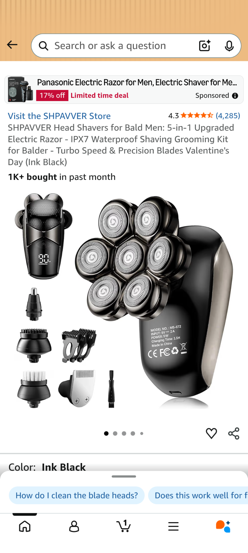 A027 SHPAVVER Head Shavers for Bald Men: 5-in-1 Upgraded Electric Razor - IPX7 Waterproof Shaving Grooming Kit for Balder - Turbo Speed & Precision Blades Valentine's Day (Ink Black)
