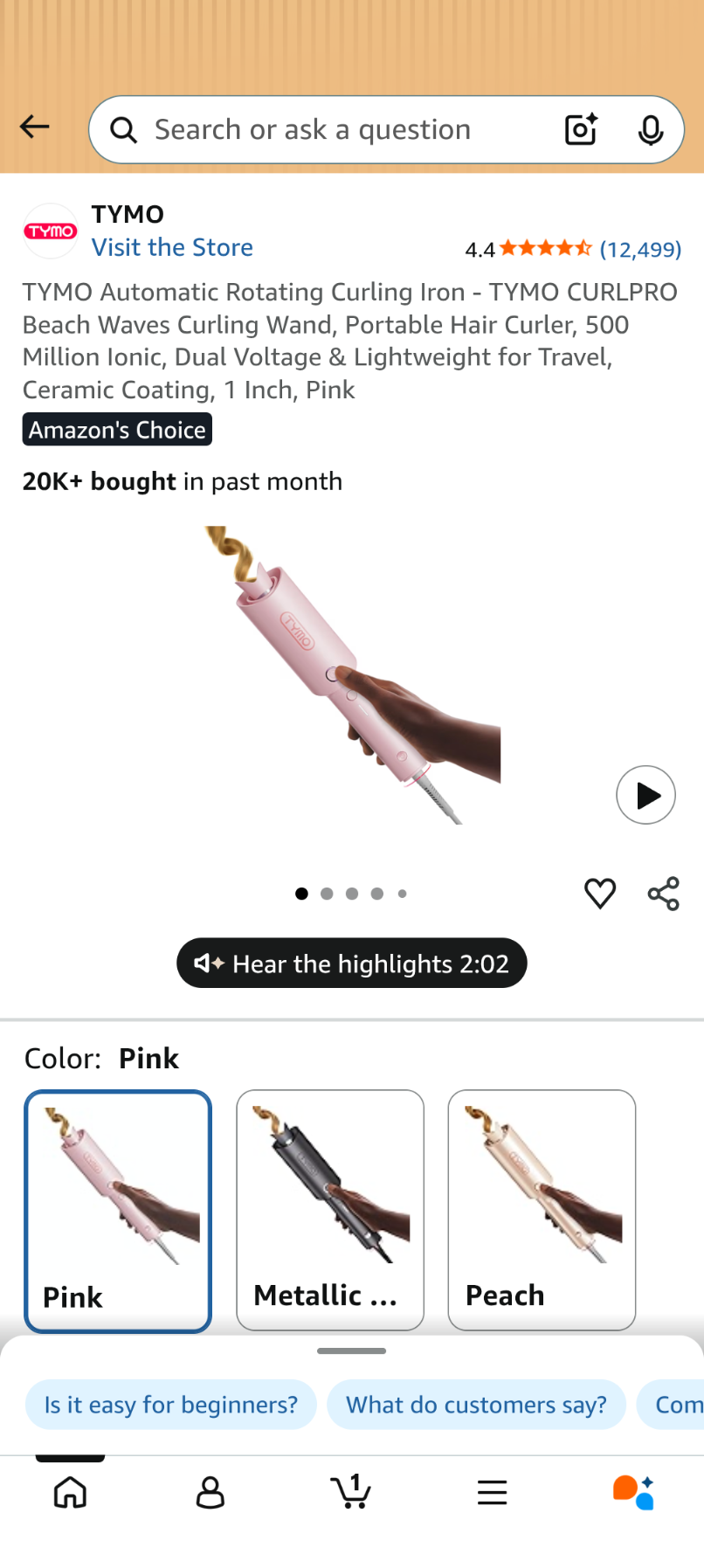 A028 TYMO Automatic Rotating Curling Iron - TYMO CURLPRO Beach Waves Curling Wand, Portable Hair Curler, 500 Million Ionic, Dual Voltage & Lightweight for Travel, Ceramic Coating, 1 Inch, Pink