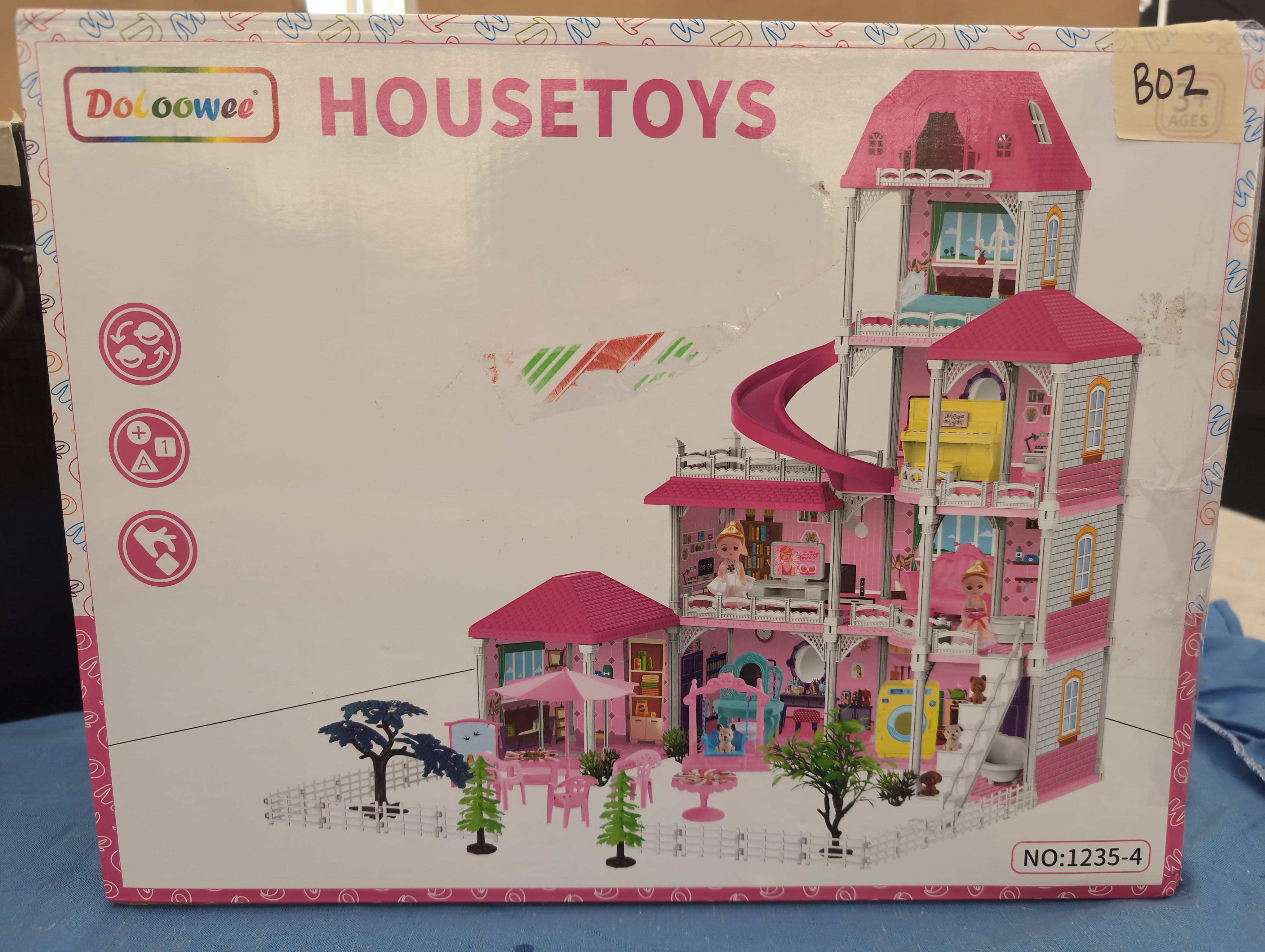 B02 Doloowee DIY Dolls House for Girls - 4-Level 10-Room Villa with 2 Dolls, 4 Dogs & Rich Accessories, DollsHouse Toys for Kids 4-8 Years Old