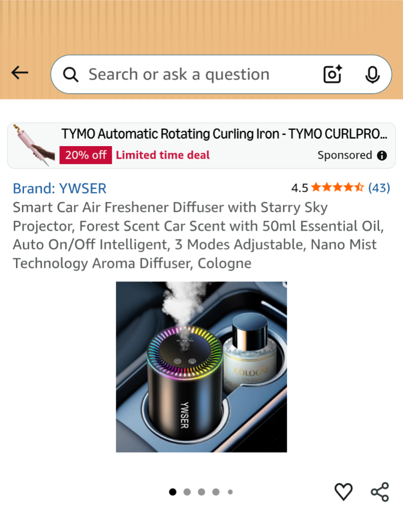 B010 Smart Car Air Freshener Diffuser with Starry Sky Projector, Forest Scent Car Scent with 50ml Essential Oil, Auto On/Off Intelligent, 3 Modes Adjustable, Nano Mist Technology Aroma Diffuser, Cologne