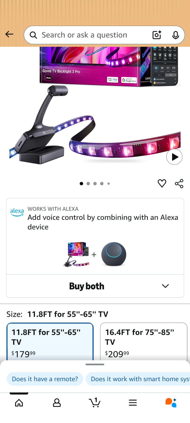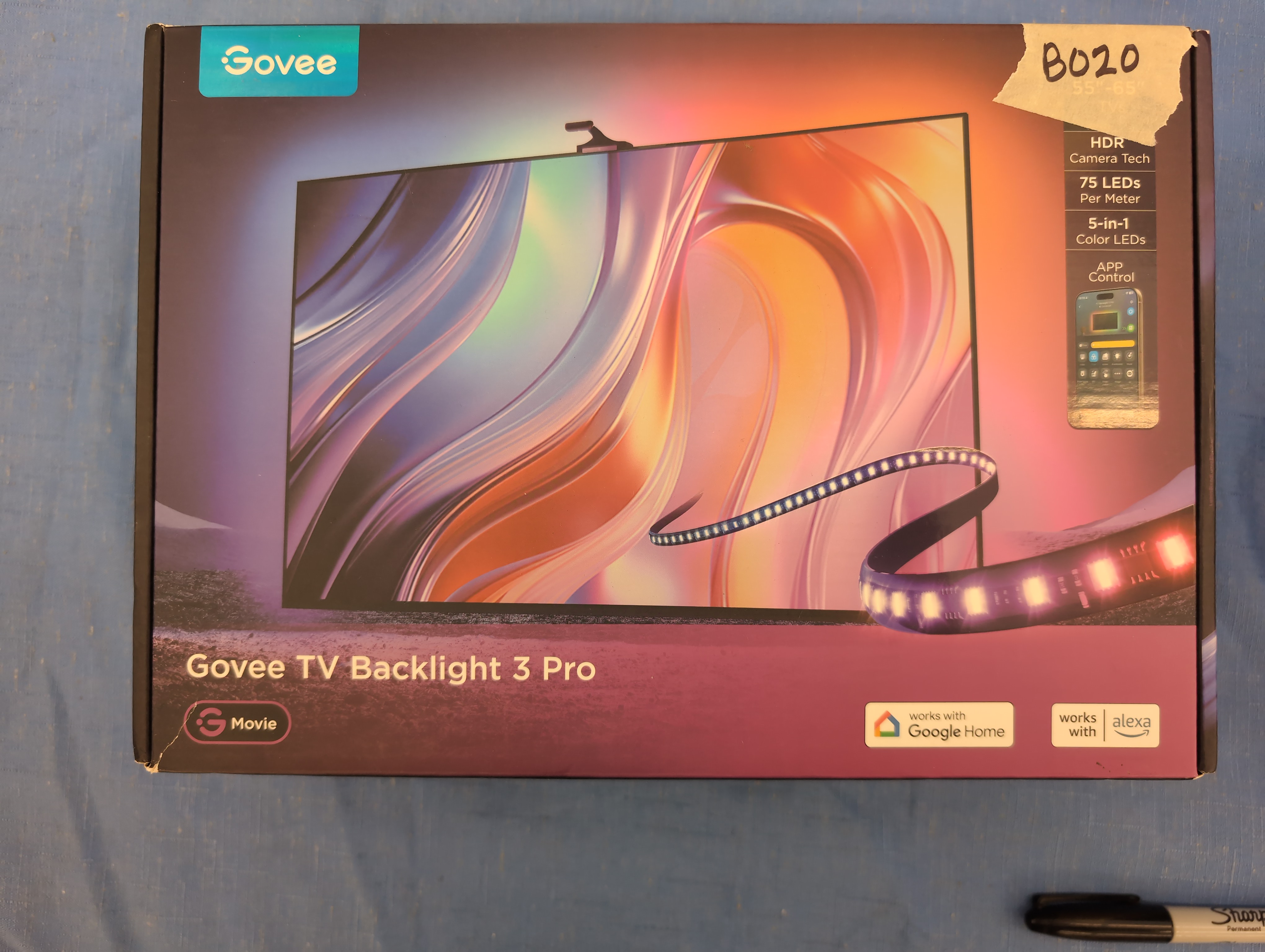 B020 Govee TV Backlight 3 Pro with HDR Triple Camera, 11.8ft 5-in-1 RGBWWIC LED Strip Lights That Change with 55-65 Inch TVs, 75LEDs/m, Supports AI Filter, Smart App and Voice Control, DreamView Sync