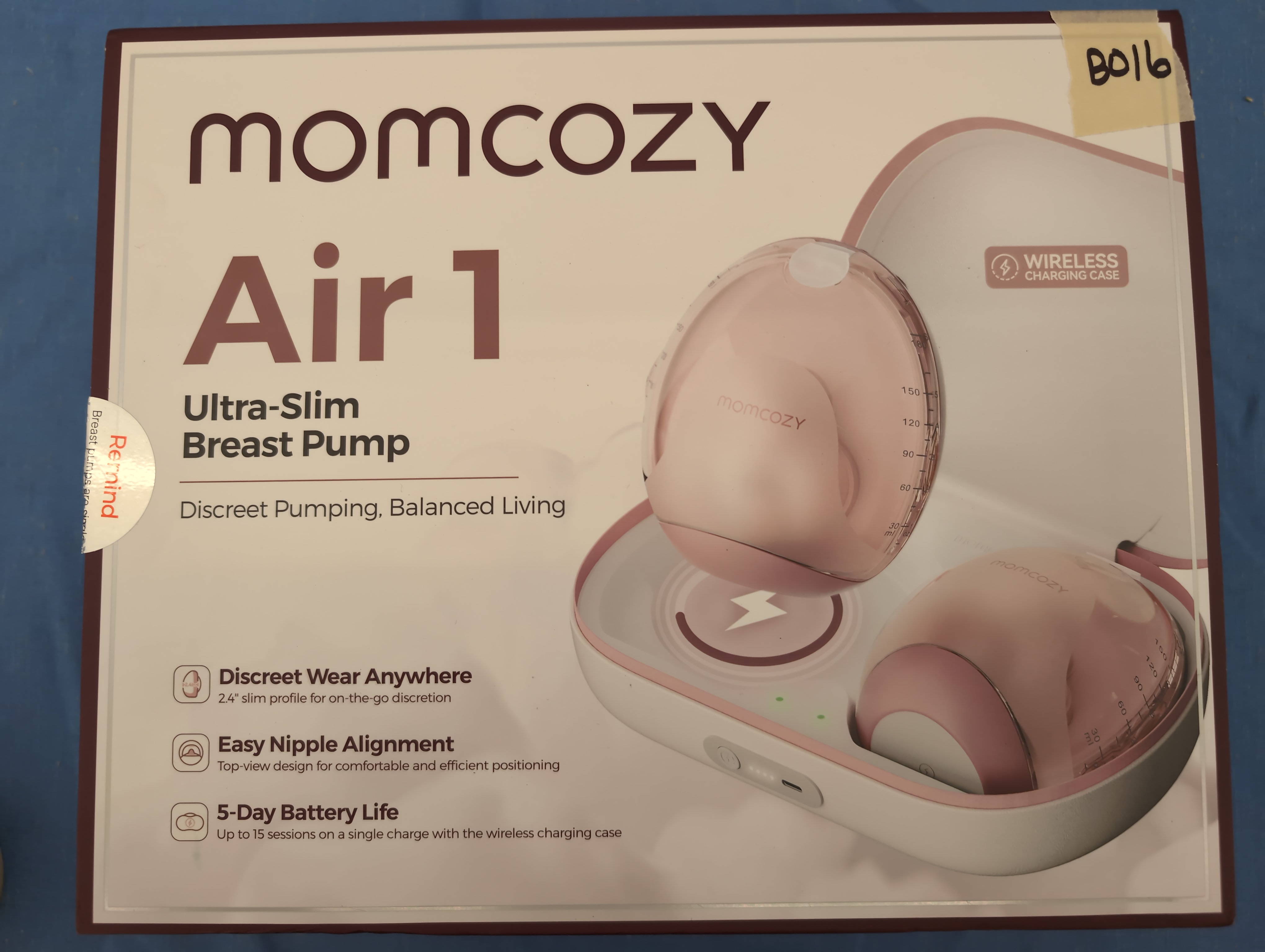 B016 Momcozy Air 1 Ultra-Slim Breast Pump, Hands-Free Wearable Pump with Wireless Charging Case & App Control with Auto Mode & Full-Milk Alert, Industry-First Transparent Top for Easy Nipple Alignment