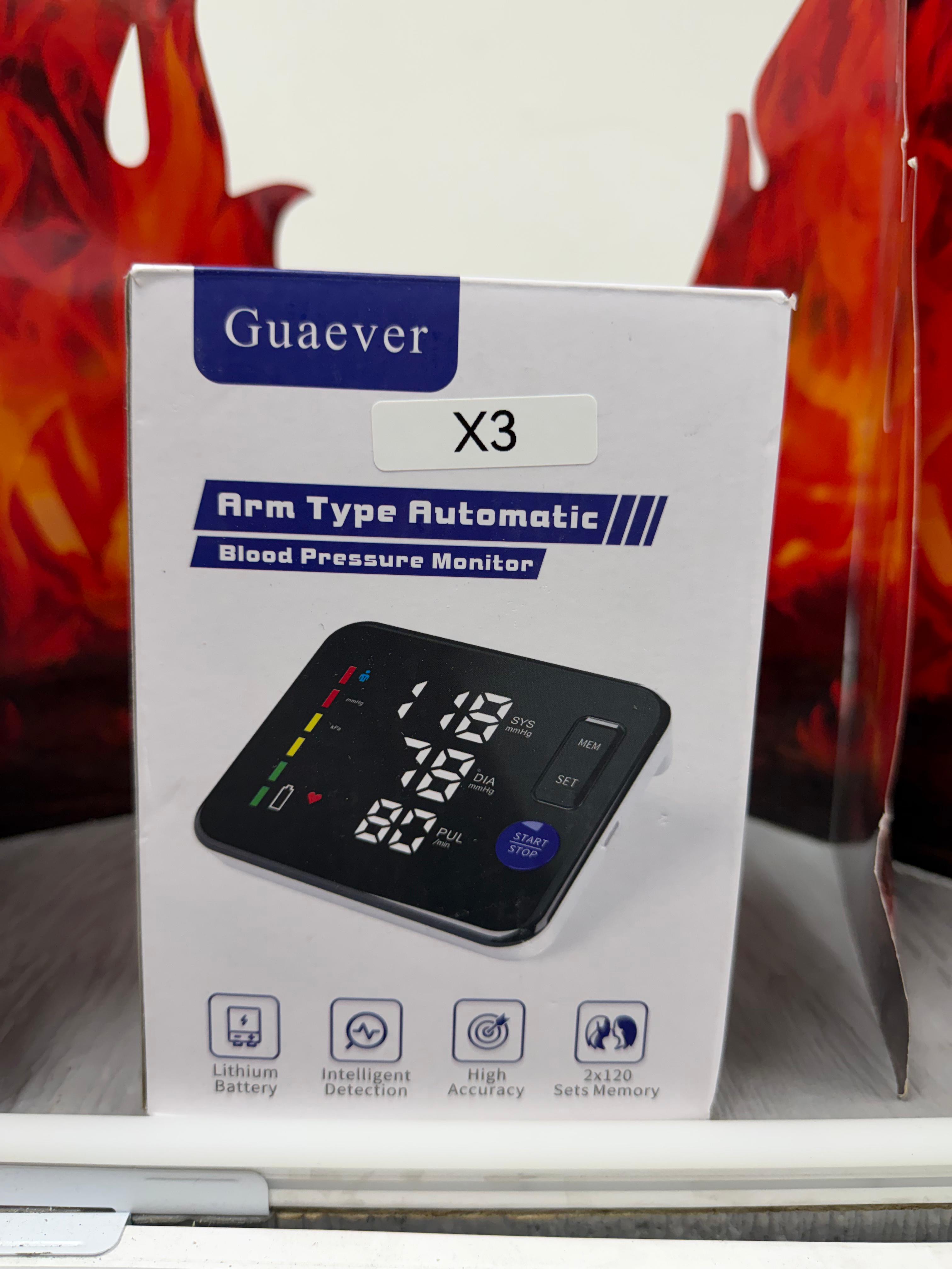 Guaever upper arm blood pressure monitor is a rechargeable health device designed for accurate home monitoring. (X3)