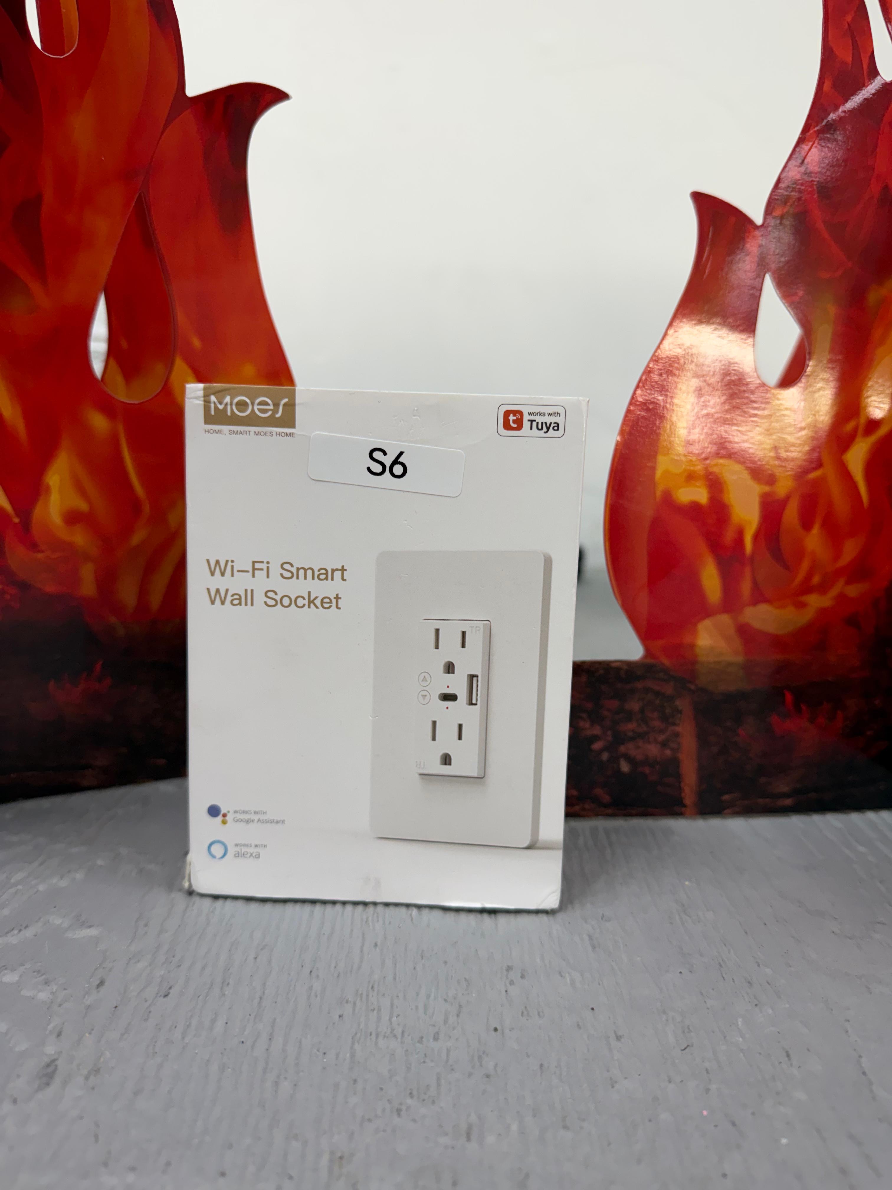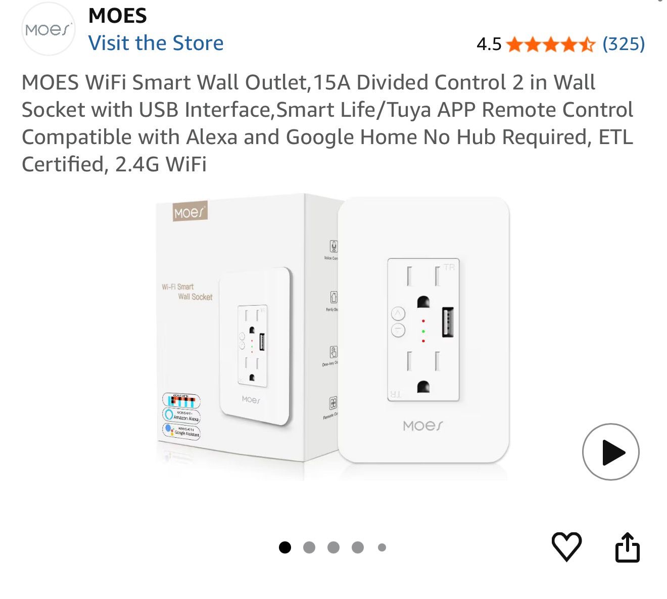 MOES WiFi Smart Wall Outlet featuring divided control for its two AC sockets and a built-in USB interface. (S6)