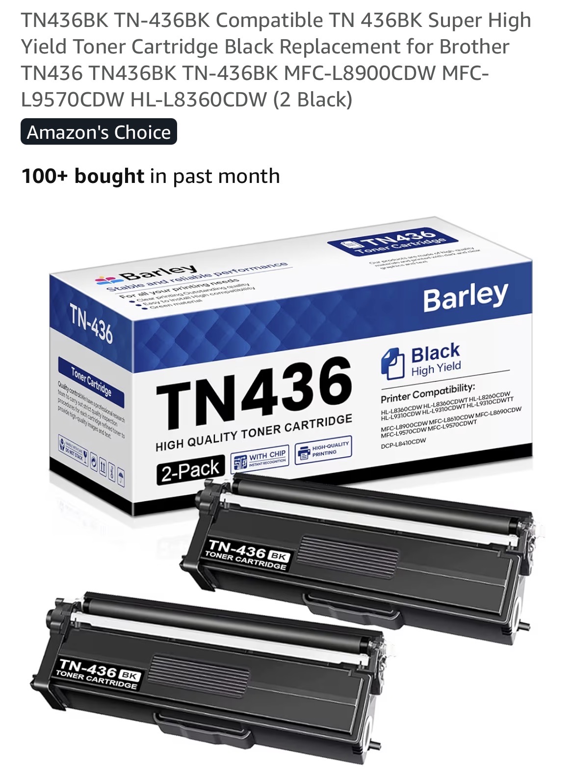 TN436BK TN-436BK Compatible TN 436BK Super High Yield Toner Cartridge Black Replacement for Brother TN436 TN436BK TN-436BK MFC-L8900CDW MFC-L9570CDW HL-L8360CDW #E7