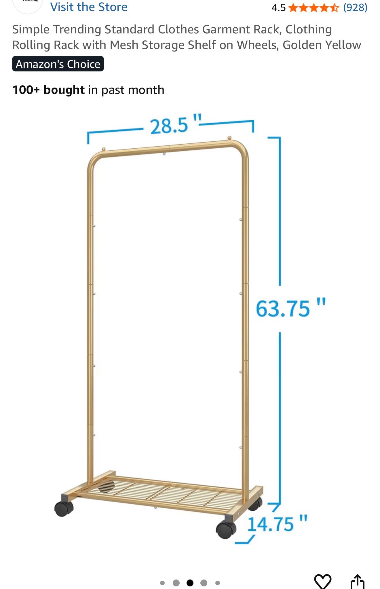 Simple Trending Mini Rolling Garment Rack Organizer with Bottom Shelf Storage, Gold( X6)