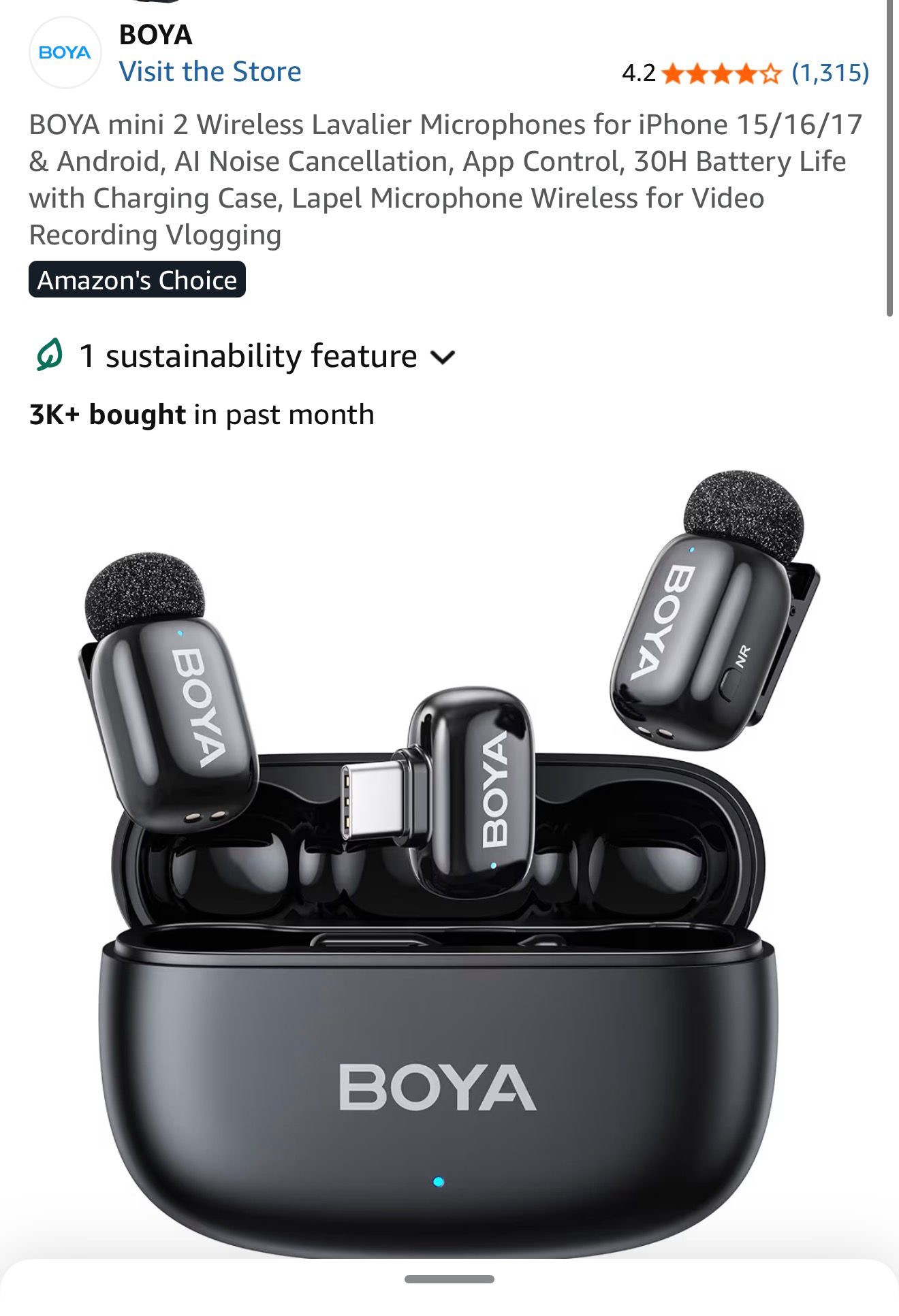 BOYA mini 2 wireless lavalier microphone system designed for video recording and vlogging. (S19)
