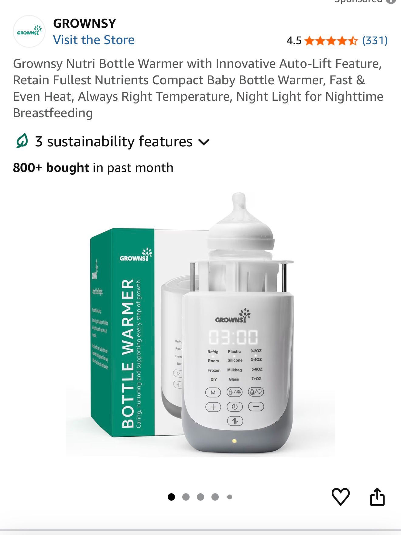 GROWNSY Nutri Bottle Warmer features an innovative auto-lift functionality designed to help retain nutrients while providing fast, even heating at the correct temperature. (Z9)