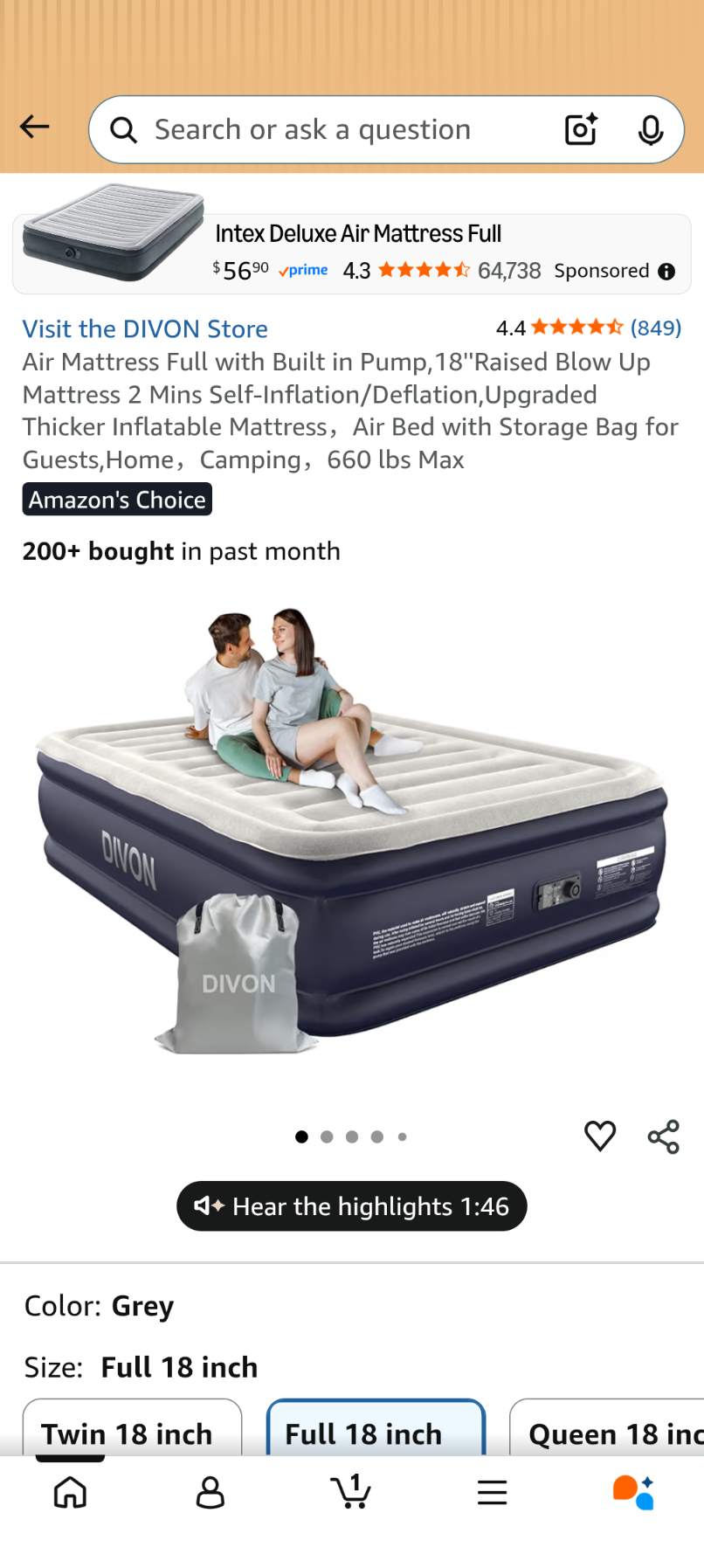 C015 Air Mattress Full with Built in Pump,18''Raised Blow Up Mattress 2 Mins Self-Inflation/Deflation,Upgraded Thicker Inflatable Mattress,Air Bed with Storage Bag for Guests,Home,Camping,660 lbs Max