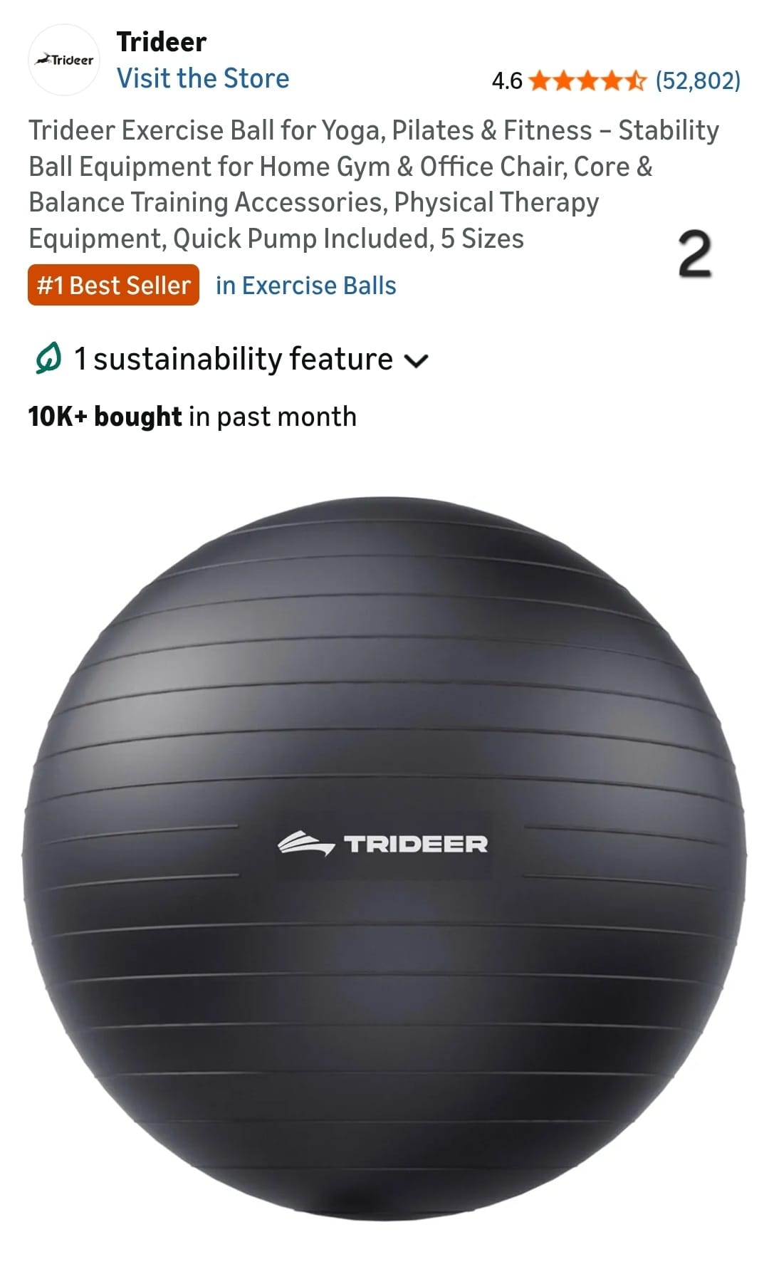 Trideer Exercise Ball for Yoga, Pilates & Fitness - Stability Ball Equipment for Home Gym & Office Chair, Core & Balance Training Accessories, Physical Therapy Equipment, Quick Pump Included, 5 Sizes. Lv2