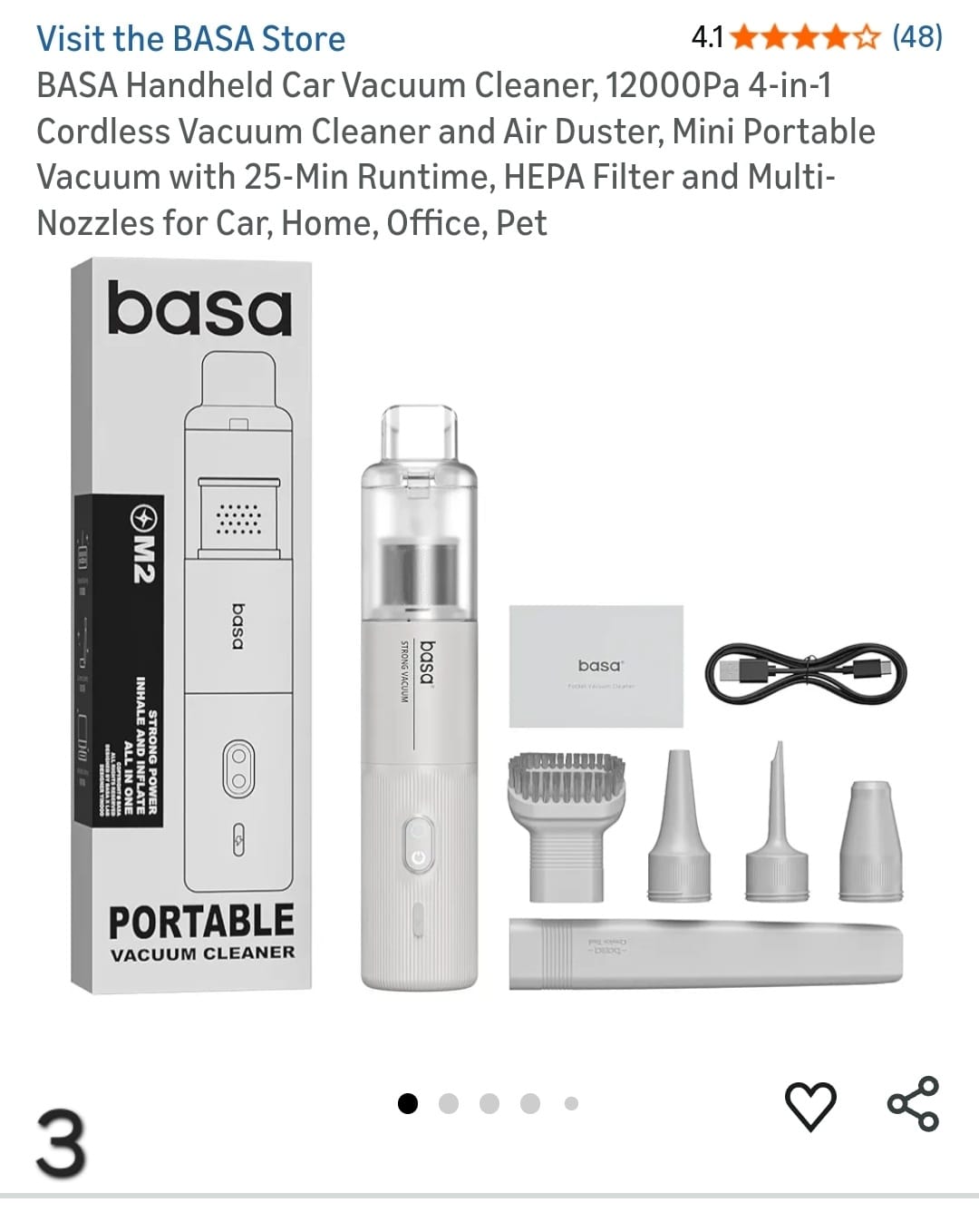 BASA Handheld Car Vacuum Cleaner, 12000Pa 4-in-1 Cordless Vacuum Cleaner and Air Duster, Mini Portable Vacuum with 25-Min Runtime, HEPA Filter and Multi-Nozzles for Car, Home, Office, Pet. Lv3
