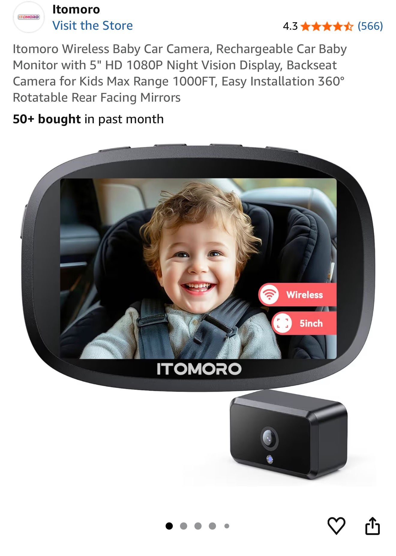 Itomoro Wireless Baby Car Camera, a monitor and camera system designed for viewing rear-facing infants while driving.( Z14)