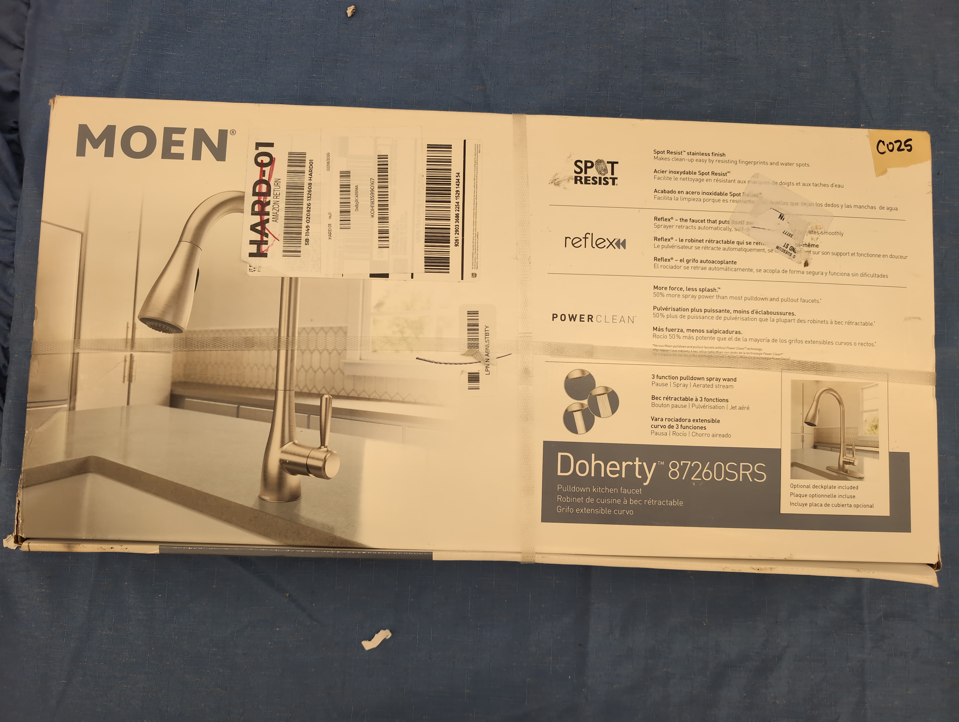 C025 Moen Doherty Spot Resist Stainless Single Handle Pull-Down Kitchen Faucet with Power Clean and Reflex Docking System, 87260SRS