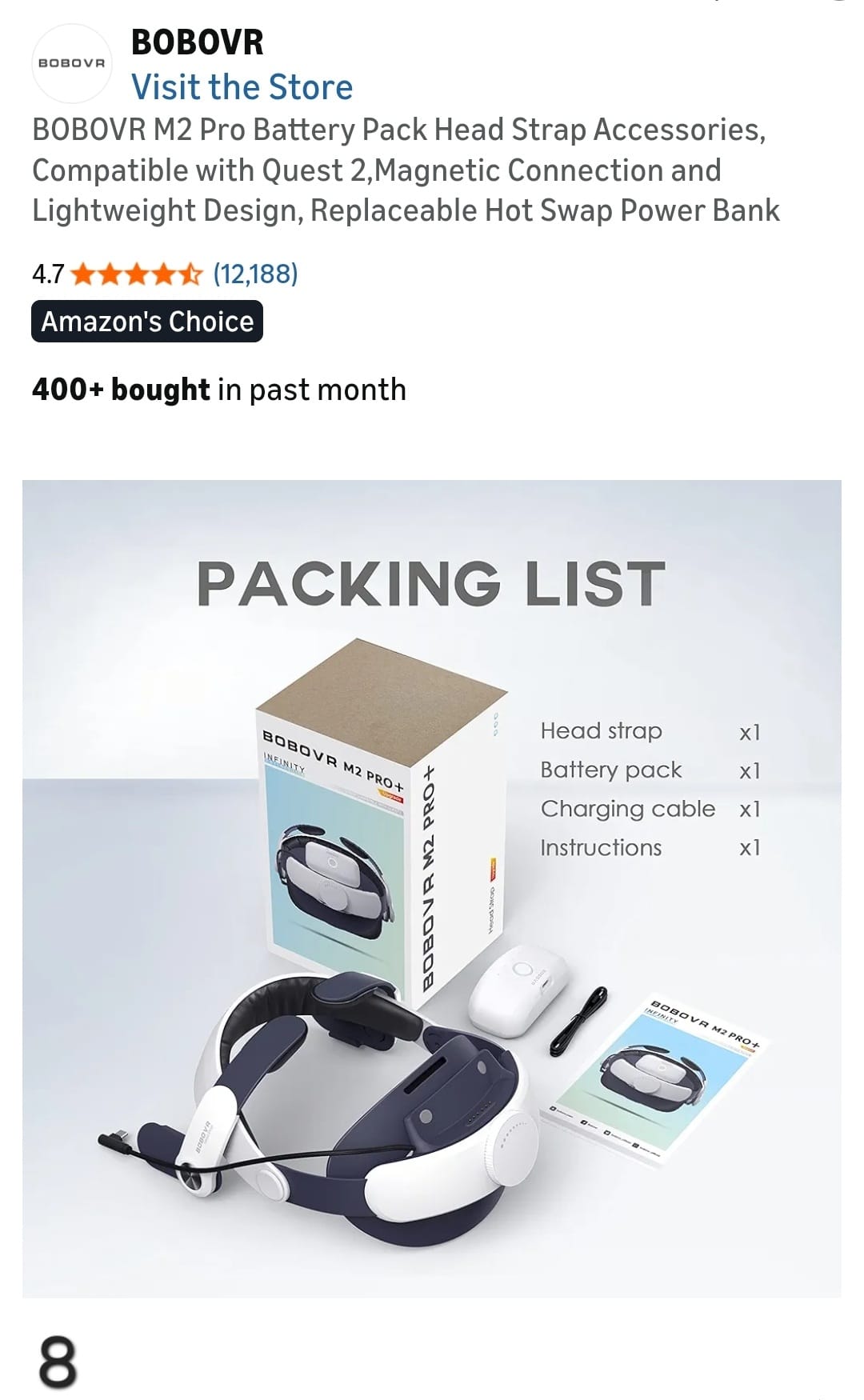 BOBOVR M2 Pro Battery Pack Head Strap Accessories, Compatible with Quest 2, Magnetic Connection and Lightweight Design, Replaceable Hot Swap Power Bank. Lv8