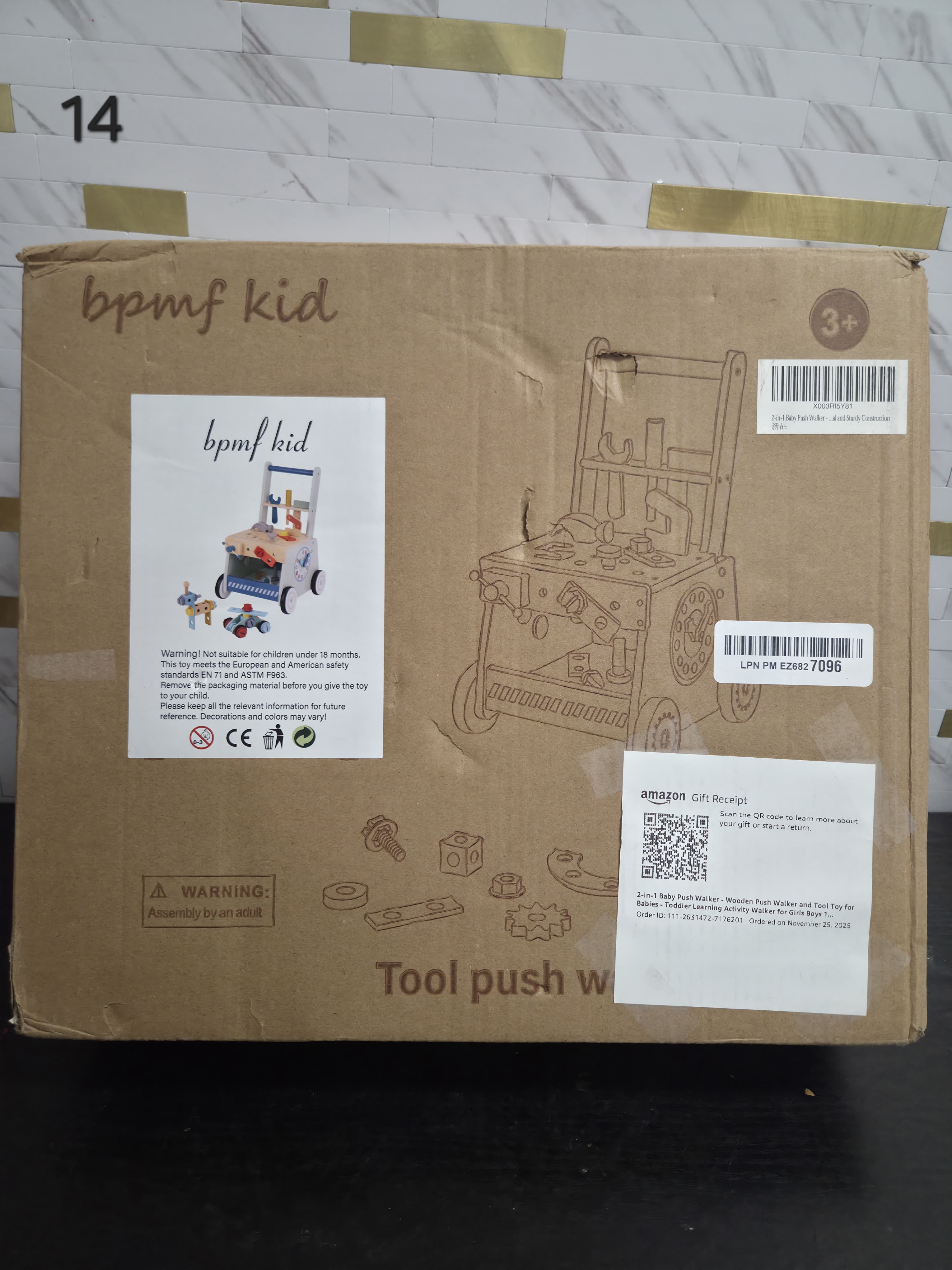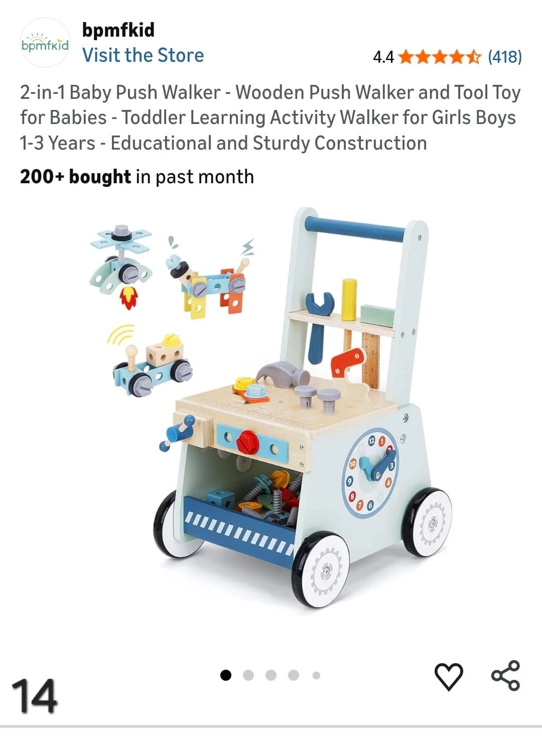 2-in-1 Baby Push Walker - Wooden Push Walker and Tool Toy for Babies - Toddler Learning Activity Walker for Girls Boys 1-3 Years - Educational and Sturdy Construction. Lv14