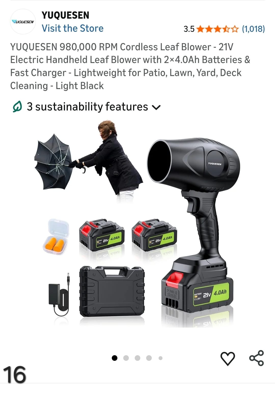 YUQUESEN 980,000 RPM Cordless Leaf Blower - 21V Electric Handheld Leaf Blower with 2x4.0Ah Batteries & Fast Charger - Lightweight for Patio, Lawn, Yard, Deck Cleaning. Lv16
