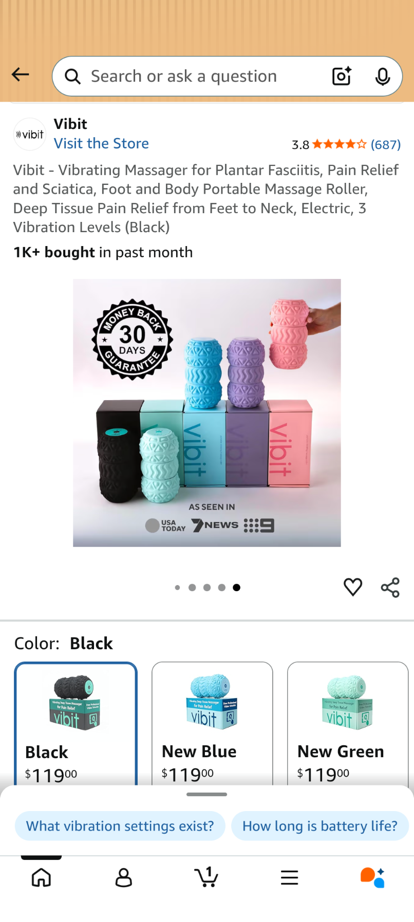 C028 Vibit - Vibrating Massager for Plantar Fasciitis, Pain Relief and Sciatica, Foot and Body Portable Massage Roller, Deep Tissue Pain Relief from Feet to Neck, Electric, 3 Vibration Levels (Black)