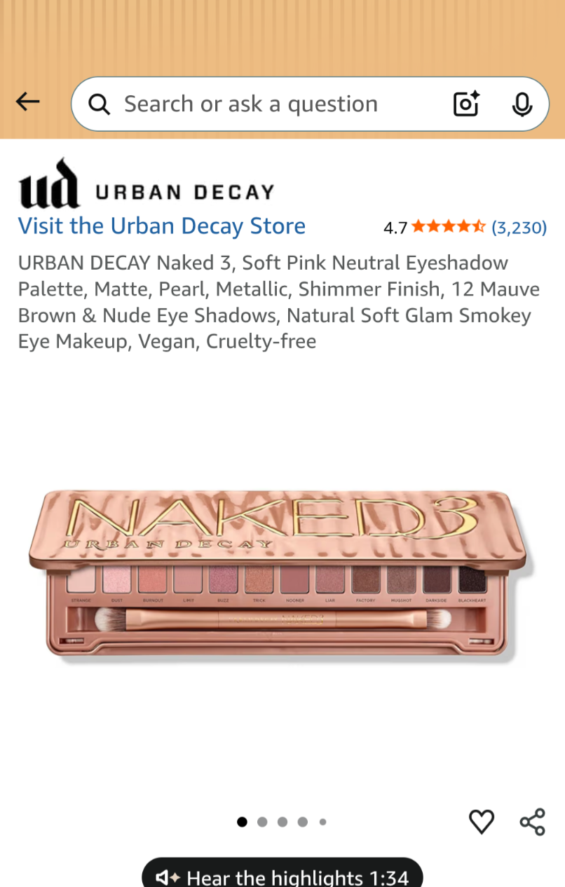 C032 URBAN DECAY Naked 3, Soft Pink Neutral Eyeshadow Palette, Matte, Pearl, Metallic, Shimmer Finish, 12 Mauve Brown & Nude Eye Shadows, Natural Soft Glam Smokey Eye Makeup, Vegan, Cruelty-free