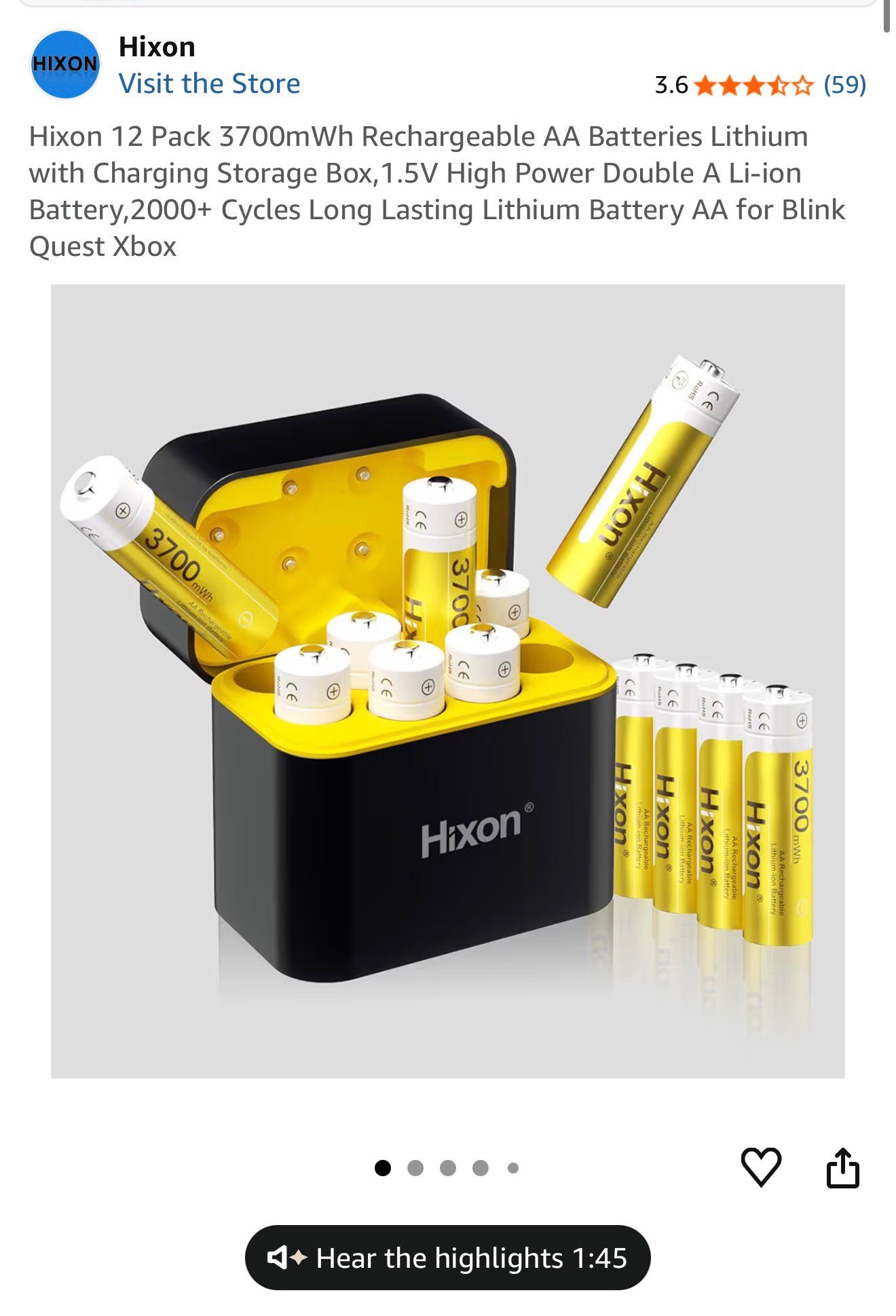set of Hixon 12-pack 3700mWh Rechargeable AA Lithium Batteries with a Charging Storage Box.( S13)