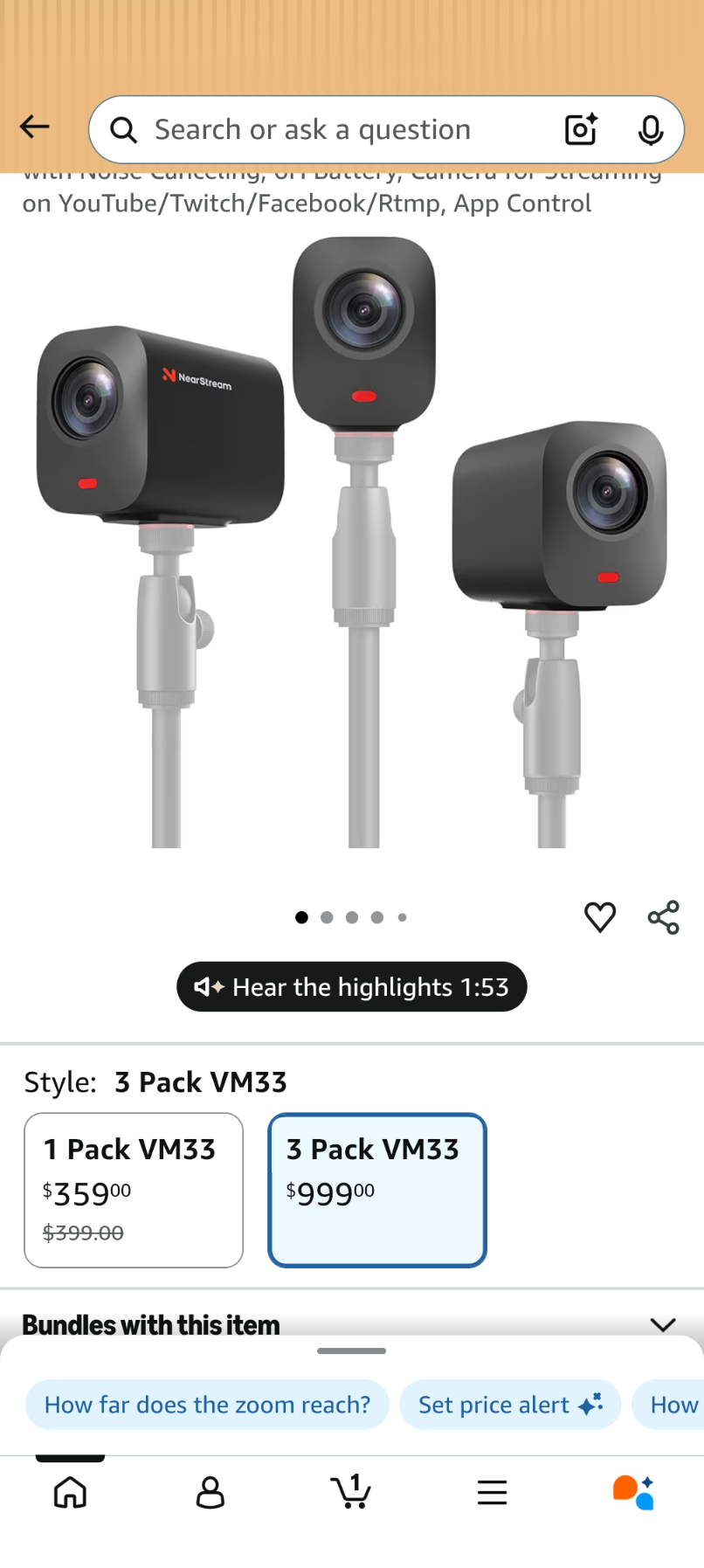 C031 NearStream 3-Pack Live Streaming Camera 2K, Streaming Webcam with 40X Hybrid Zoom, 8-MEMS Mic with Noise Canceling, 6H Battery, Camera for Streaming on YouTube/Twitch/Facebook/Rtmp, App Control