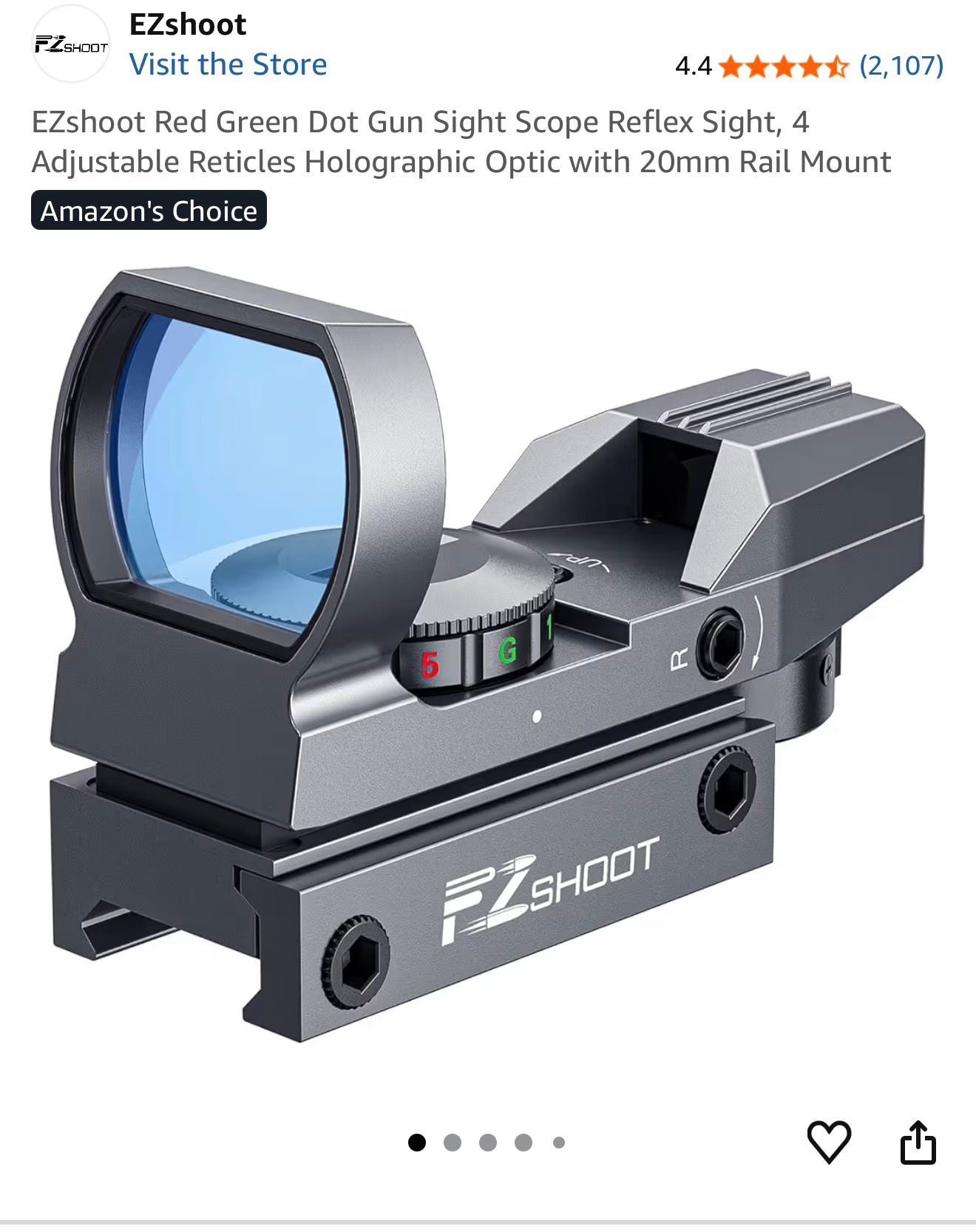 EZshoot Red Green Dot Gun Sight Scope Reflex Sight, 4 Adjustable Reticles Holographic Optic with 20mm Rail Mount (S14)