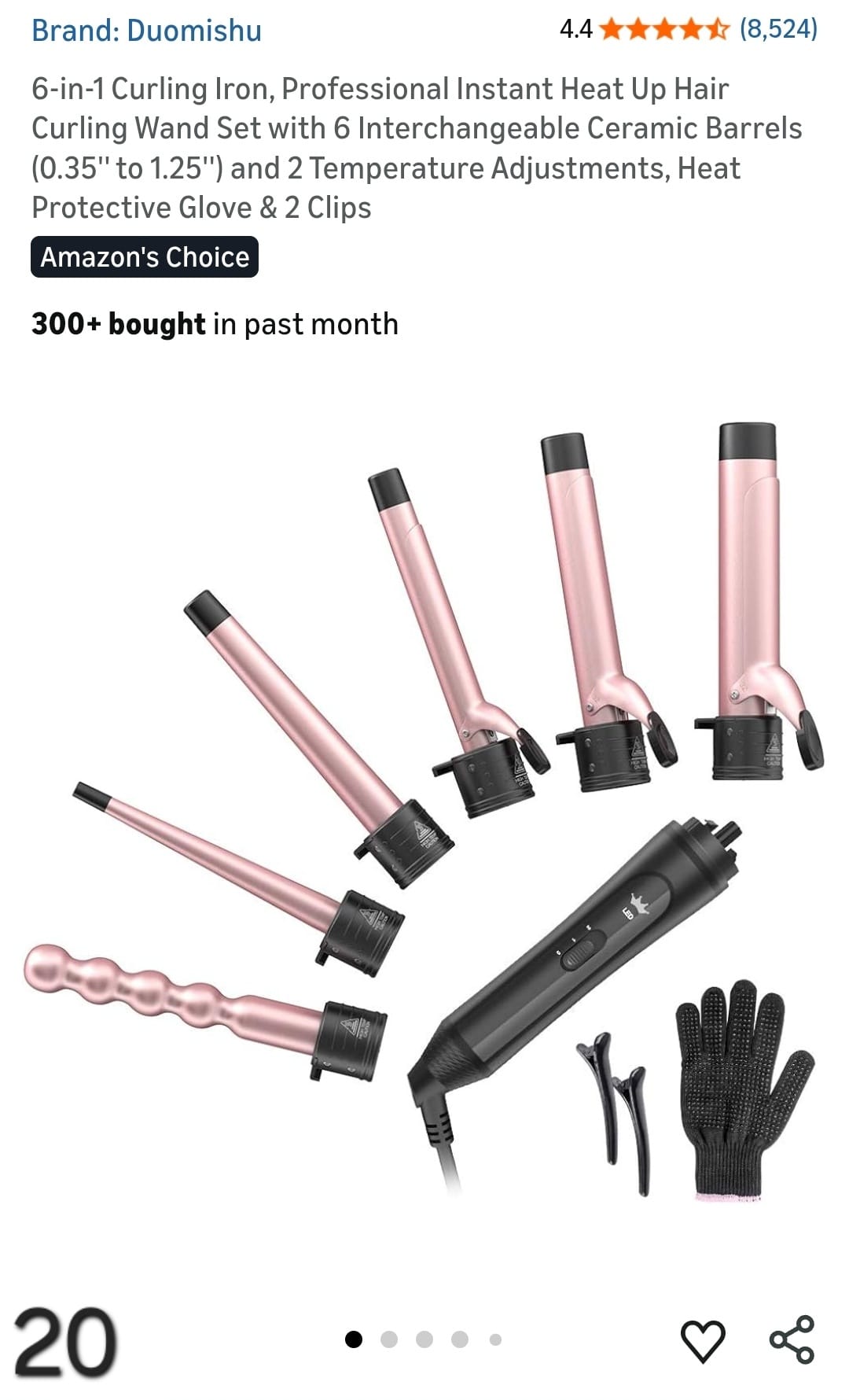 6-in-1 Curling Iron, Professional Instant Heat Up Hair Curling Wand Set with 6 Interchangeable Ceramic Barrels (0.35" to 1.25") and 2 Temperature Adjustments, Heat Protective Glove & 2 Clips. Lv20