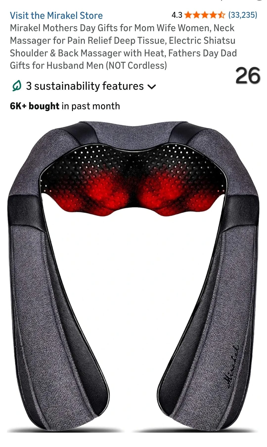 Mirakel Mothers Day Gifts for Mom Wife Women, Neck Massager for Pain Relief Deep Tissue, Electric Shiatsu Shoulder & Back Massager with Heat, Fathers Day Dad Gifts for Husband Men (NOT Cordless). Lv26