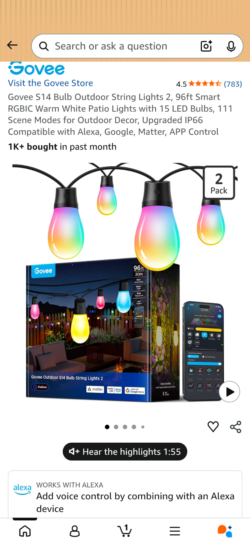 D05 Govee S14 Bulb Outdoor String Lights 2, 96ft Smart RGBIC Warm White Patio Lights with 15 LED Bulbs, 111 Scene Modes for Outdoor Decor, Upgraded IP66 Compatible with Alexa, Google, Matter, APP Control