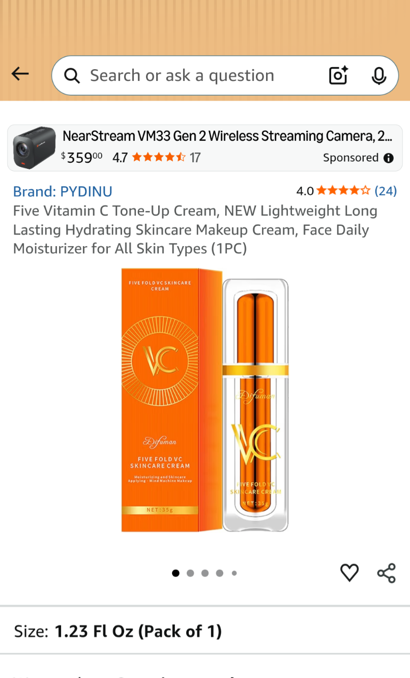 D09 Five Vitamin C Tone-Up Cream, NEW Lightweight Long Lasting Hydrating Skincare Makeup Cream, Face Daily Moisturizer for All Skin Types (1PC)