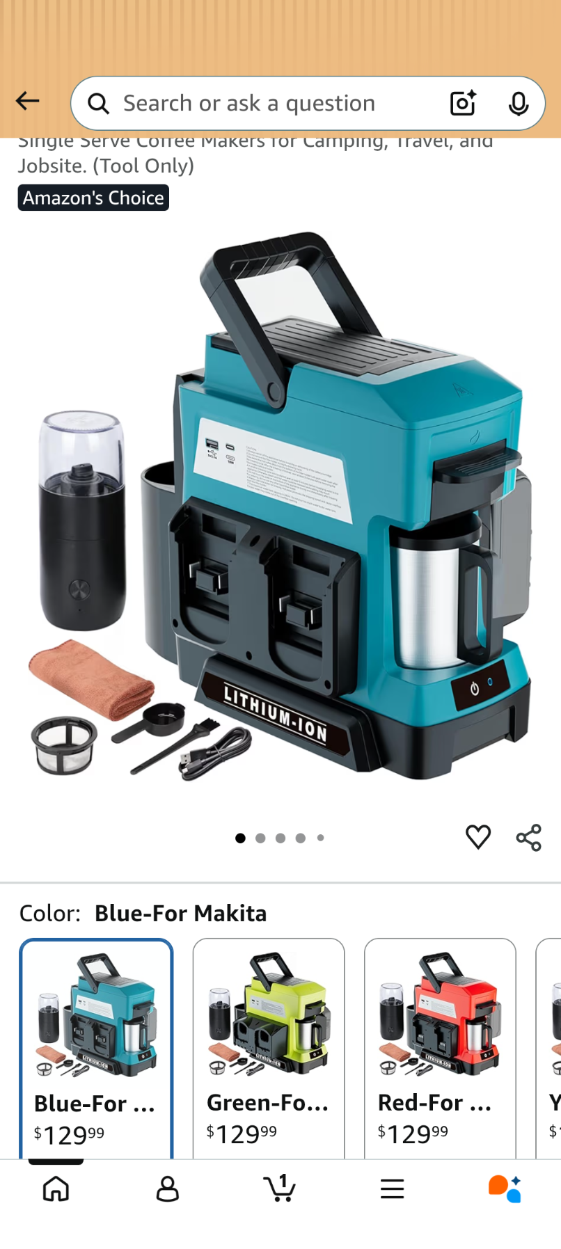 D010 Cordless Coffee Maker for Makita 18V Battery, 3 Brewing Options Drip Coffee Maker with Coffee Grinder, Portable Single Serve Coffee Makers for Camping, Travel, and Jobsite. (Tool Only)