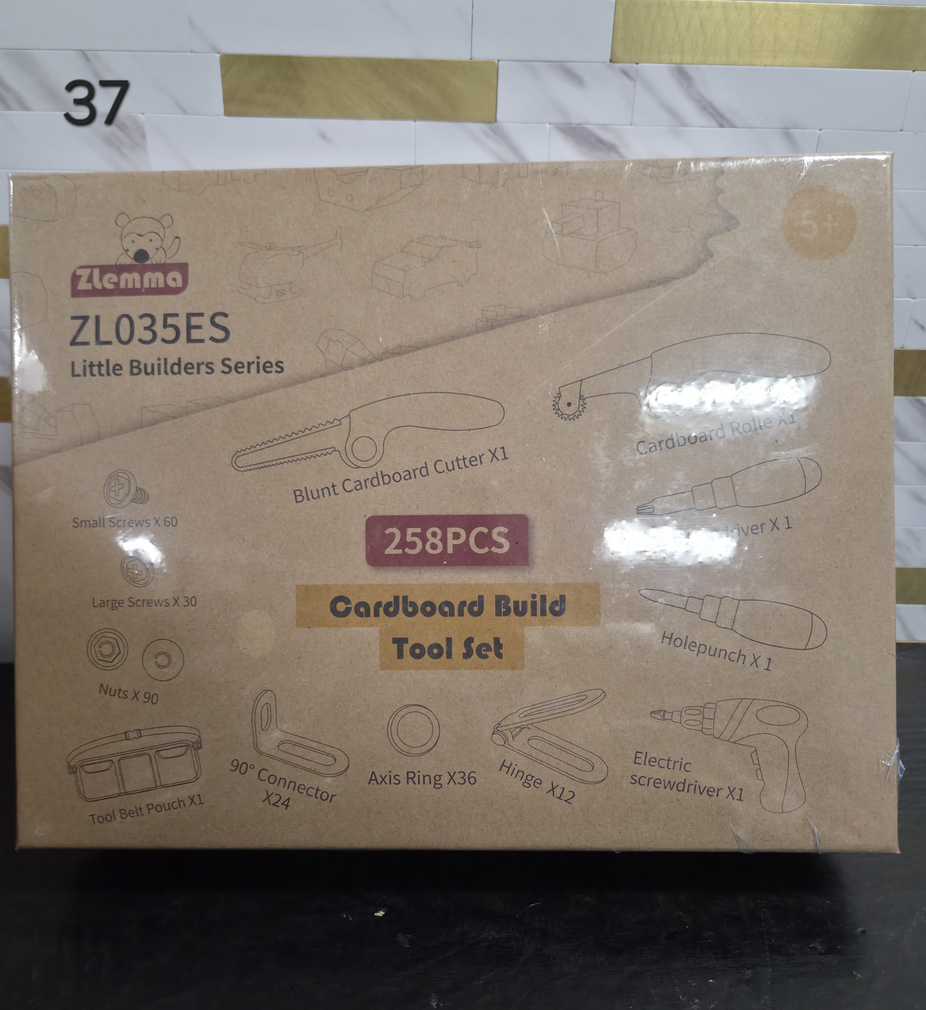 Kids Cardboard Construction Tool Set with Electric Drill & Tool Belt -258PCS, STEM Building Kit for Creative Craft Projects, Educational DIY Engineering Toy for Boys & Girls. Lv37