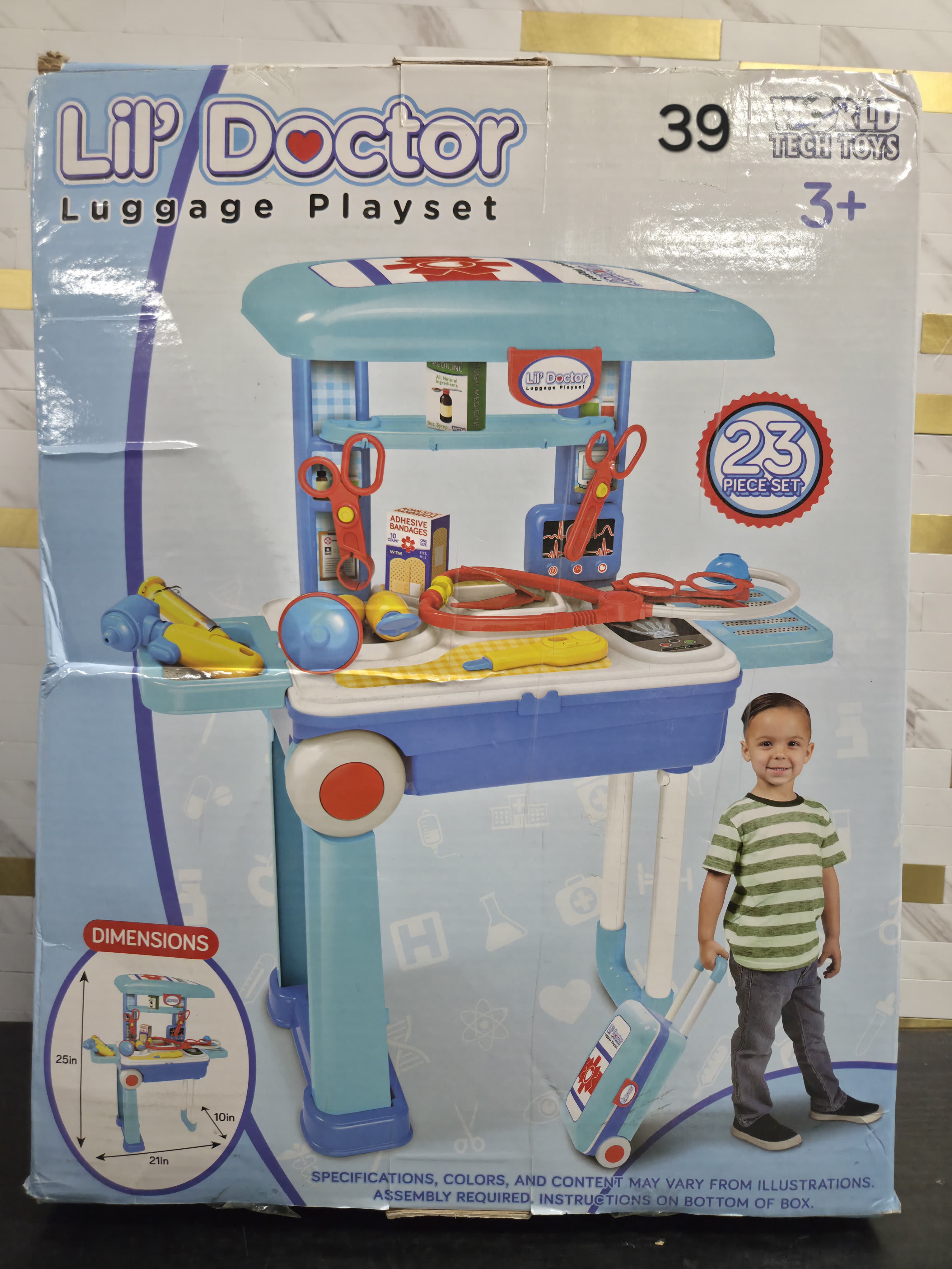 Doctor Kit for Kids 3-5, Toddler Play Set with Rolling Cart, Costume, and Stethoscope, Role Play Kids Doctors Set Educational Birthday Gift for Girls (Blue). Lv39