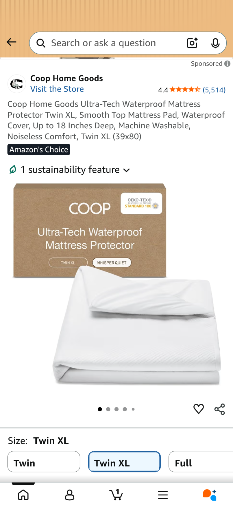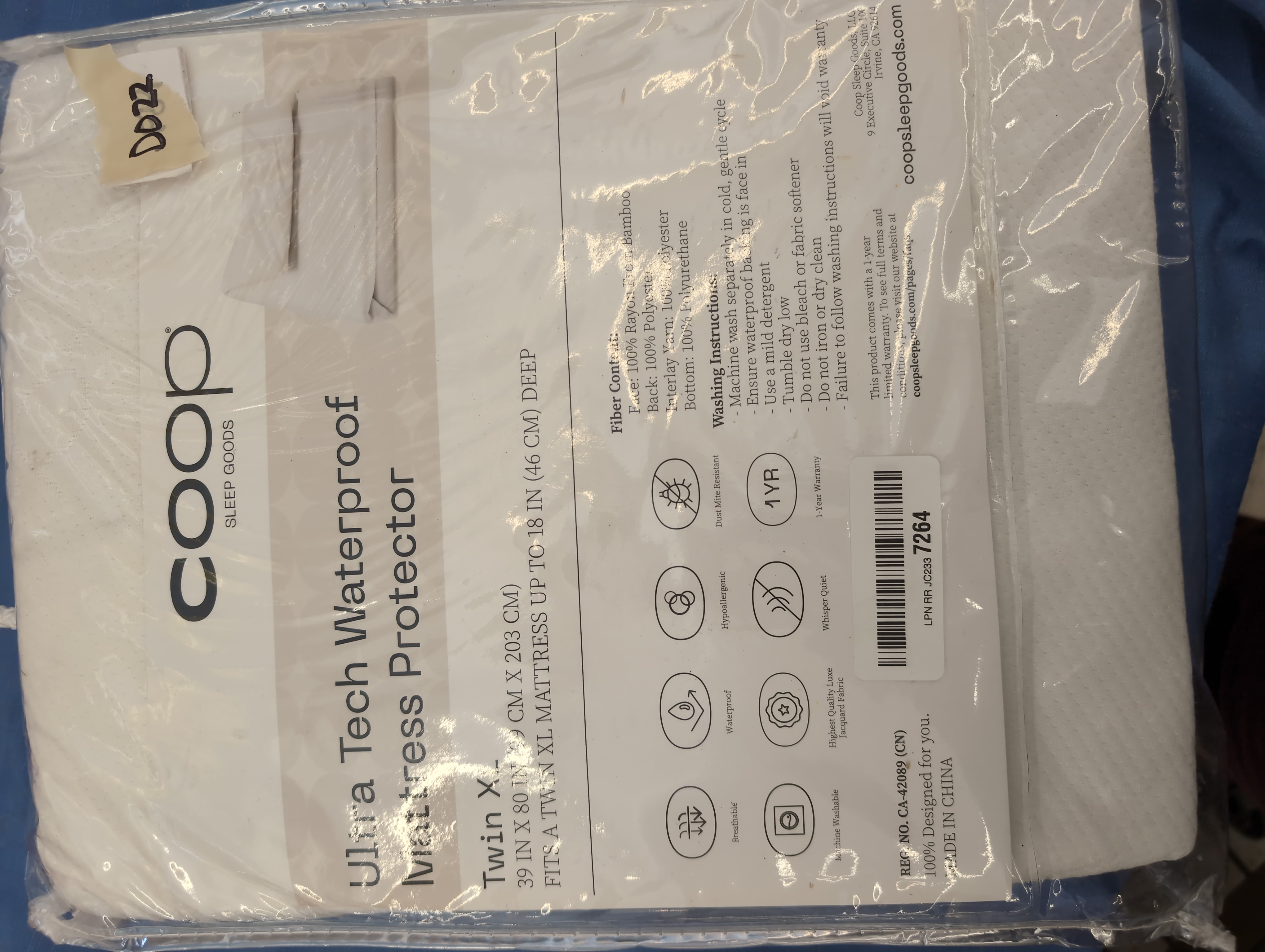 D022 Coop Home Goods Ultra-Tech Waterproof Mattress Protector Twin XL, Smooth Top Mattress Pad, Waterproof Cover, Up to 18 Inches Deep, Machine Washable, Noiseless Comfort, Twin XL (39x80)