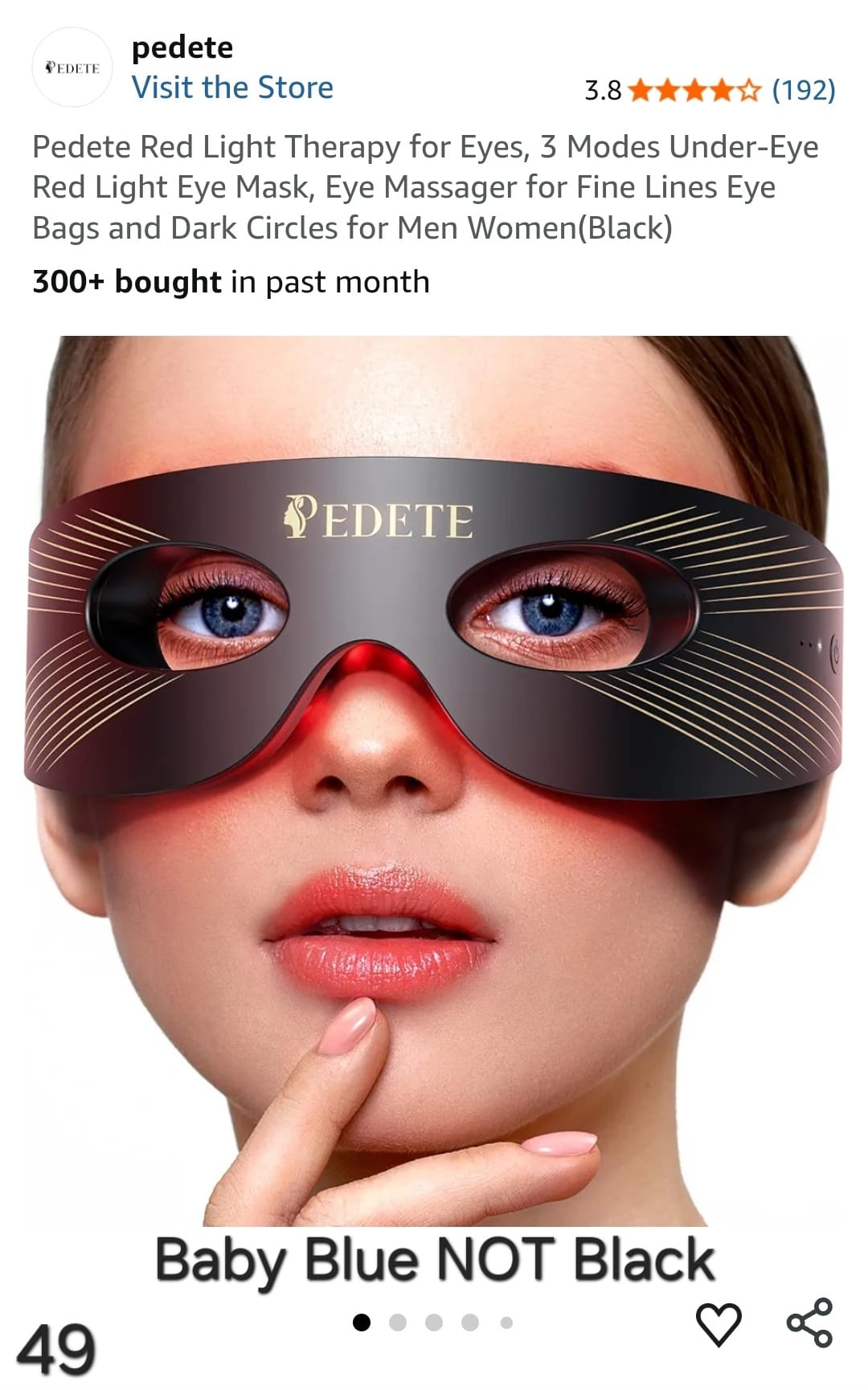 Pedete Red Light Therapy for Eyes, 3 Modes Under-Eye Red Light Eye Mask, Eye Massager for Fine Lines Eye Bags and Dark Circles for Men Women. Lv49