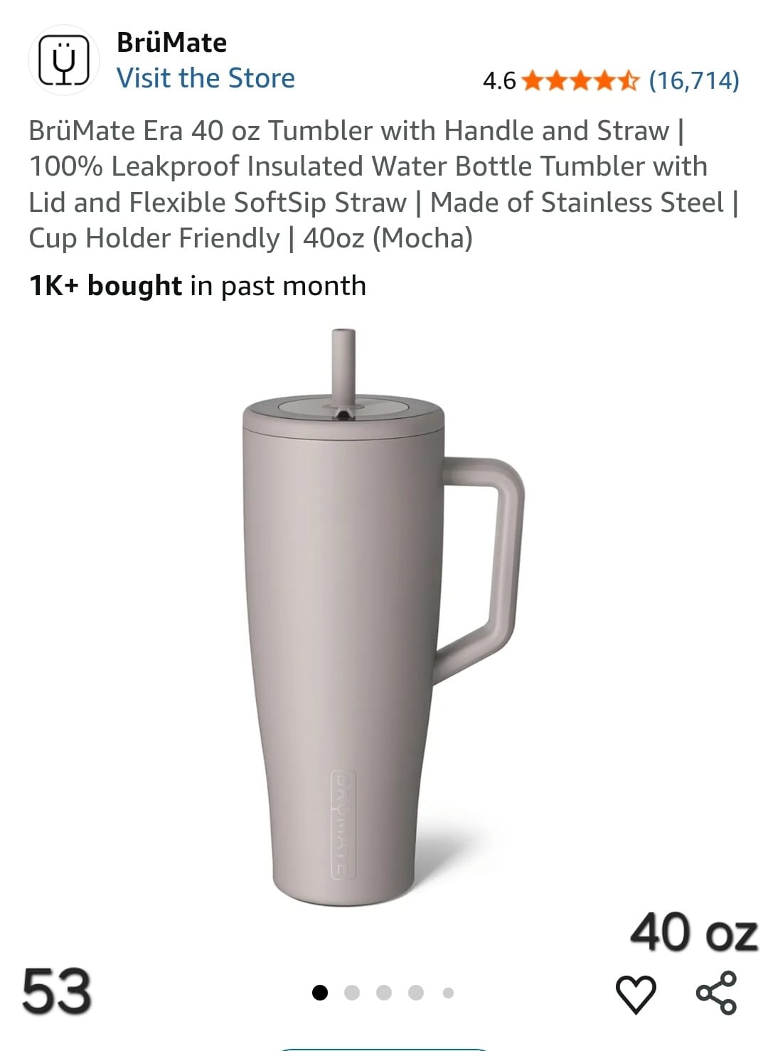 BrüMate Era 40 oz Tumbler with Handle and Straw | 100% Leakproof Insulated Water Bottle Tumbler with Lid and Flexible SoftSip Straw | Made of Stainless Steel | Cup Holder Friendly | 40oz (Mocha). Lv53