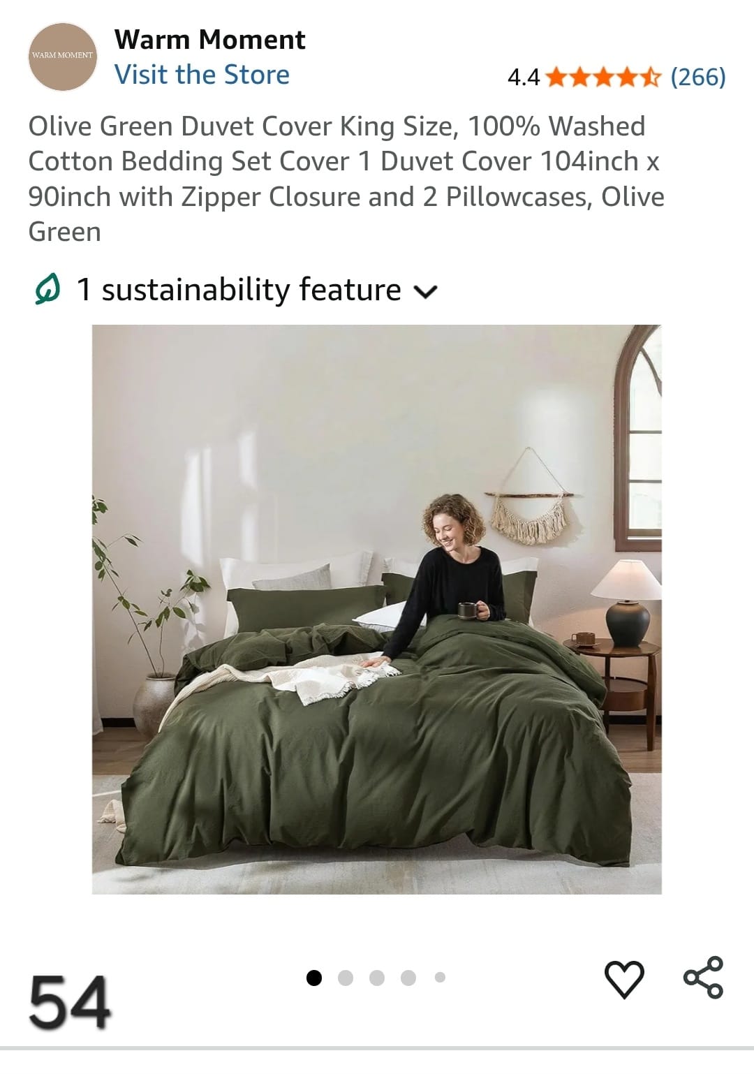 Olive Green Duvet Cover King Size, 100% Washed Cotton Bedding Set Cover 1 Duvet Cover 104inch x 90inch with Zipper Closure and 2 Pillowcases, Olive Green. Lv54