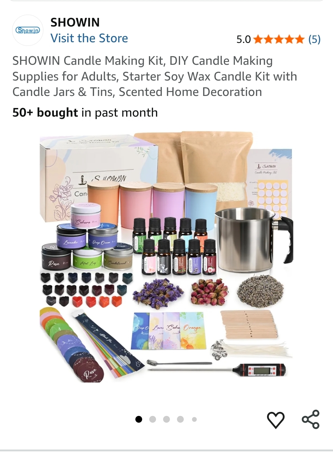 SHOWIN Candle Making Kit, DIY Candle Making Supplies for Adults, Starter Soy Wax Candle Kit with Candle Jars & Tins, Scented Home Decoration. Lv65