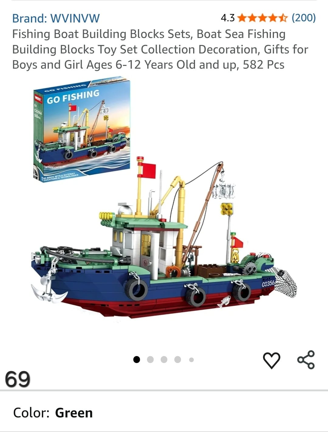 Fishing Boat Building Blocks Sets, Boat Sea Fishing Building Blocks Toy Set Collection Decoration, Gifts for Boys and Girl Ages 6-12 Years Old and up, 582 Pcs. Lv69