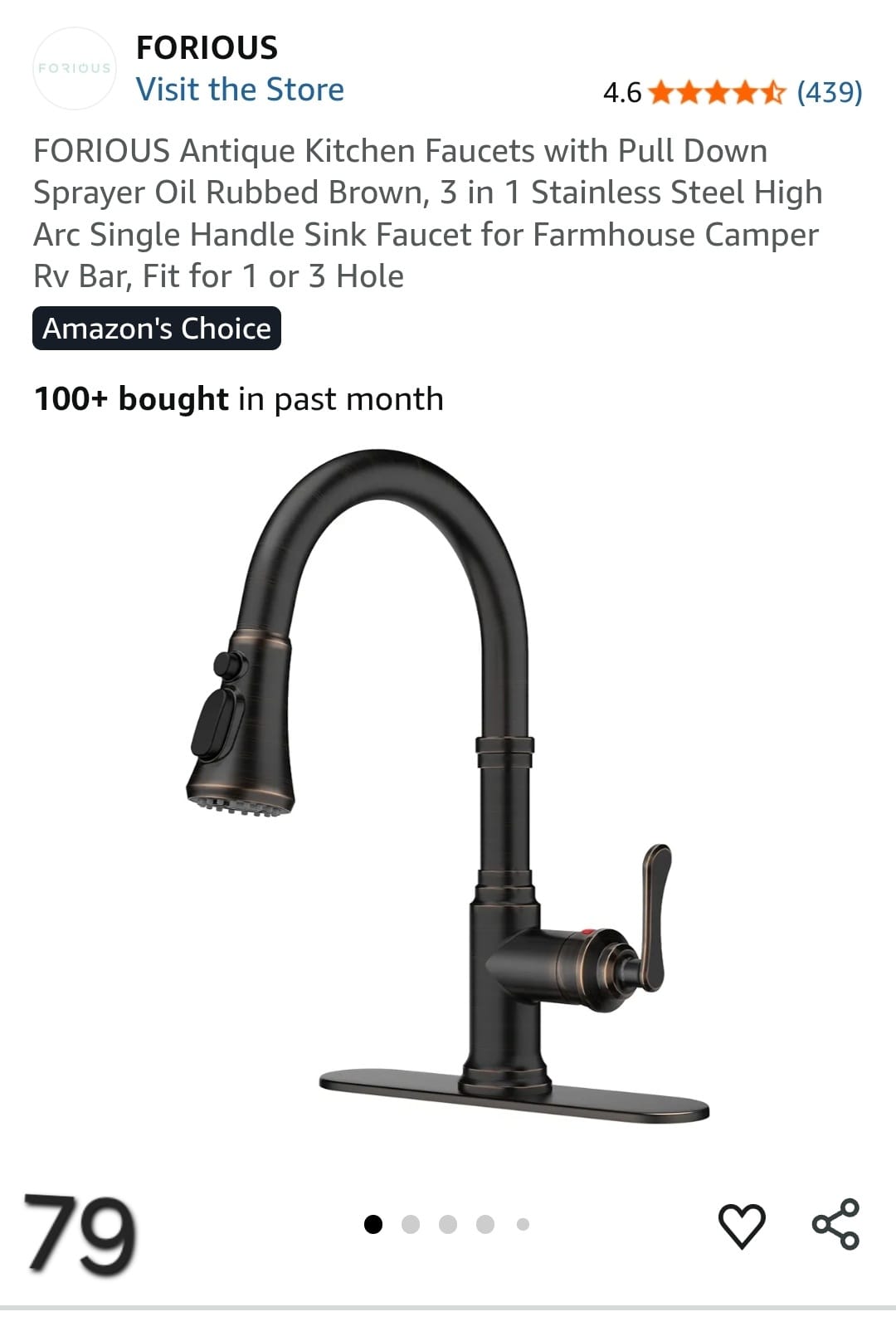FORIOUS Antique Kitchen Faucets with Pull Down Sprayer Oil Rubbed Brown, 3 in 1 Stainless Steel High Arc Single Handle Sink Faucet for Farmhouse Camper Rv Bar, Fit for 1 or 3 Hole. Lv79