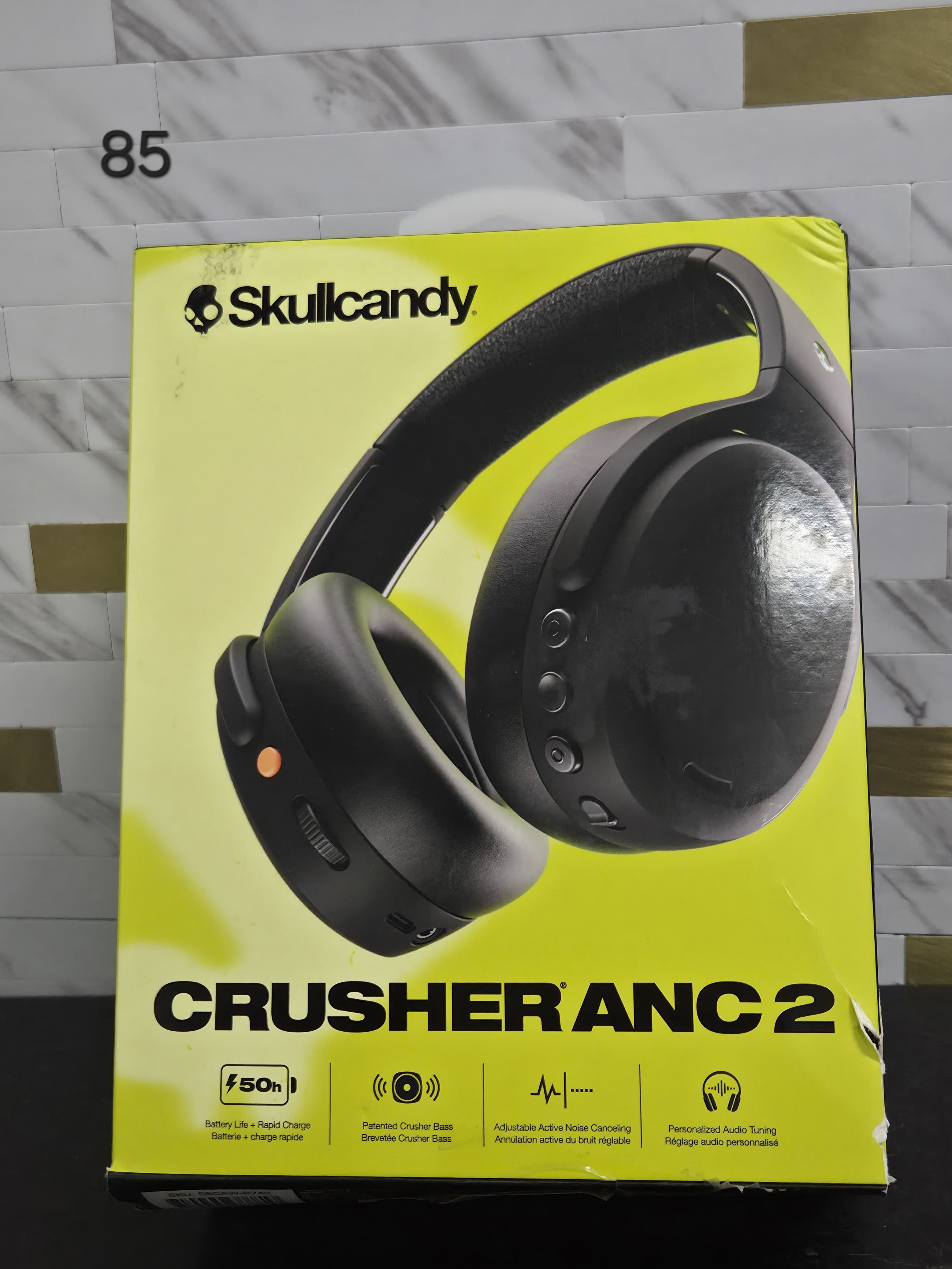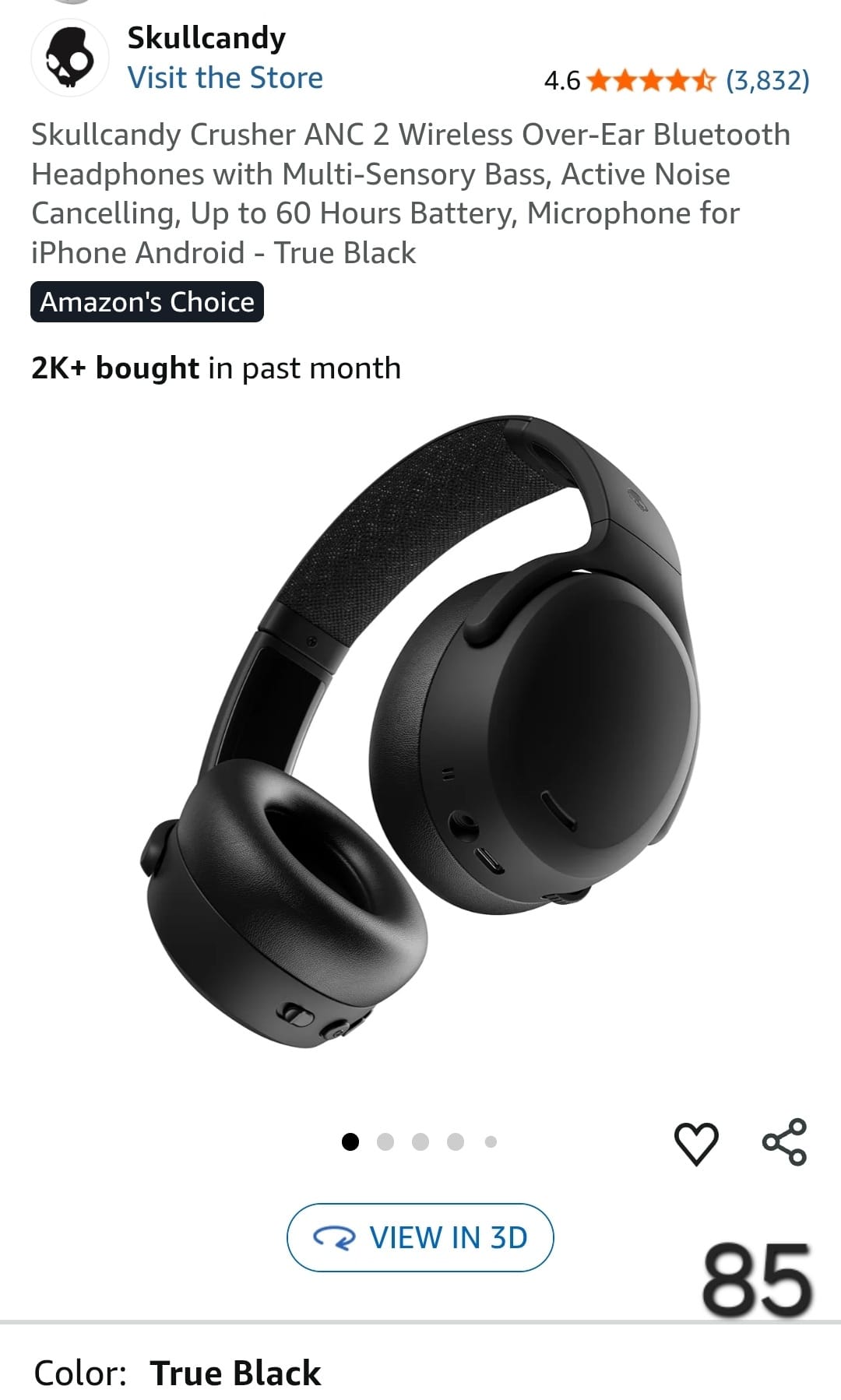 Skullcandy Crusher ANC 2 Wireless Over-Ear Bluetooth Headphones with Multi-Sensory Bass, Active Noise Cancelling, Up to 60 Hours Battery, Microphone for iPhone Android - True Black. Lv85