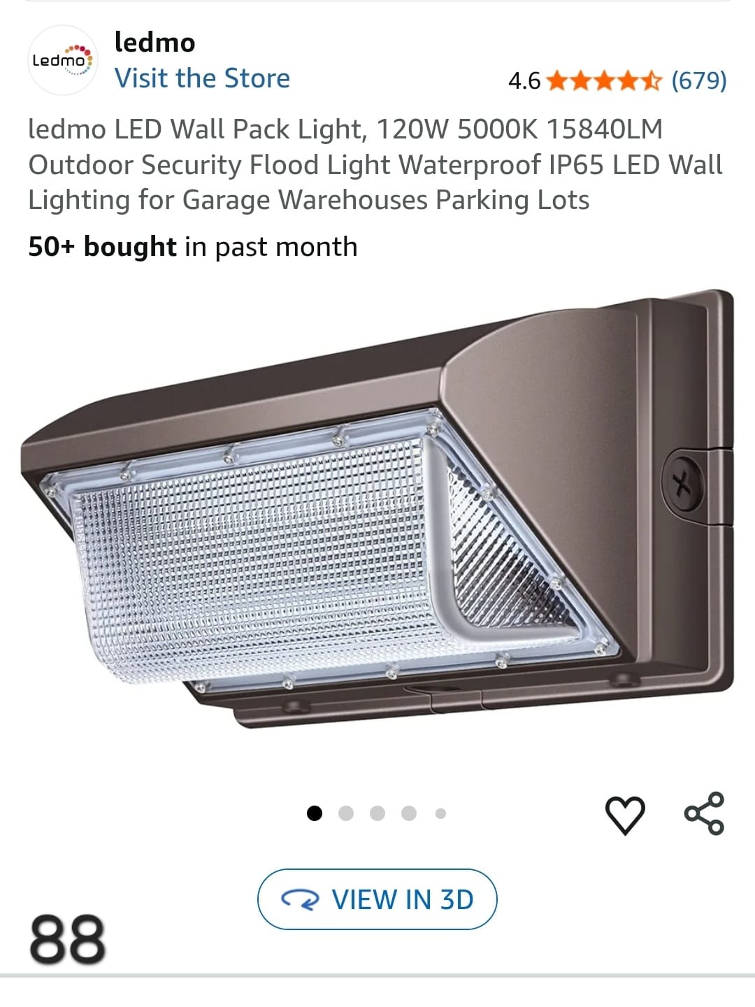 ledmo LED Wall Pack Light, 120W 5000K 15840LM Outdoor Security Flood Light Waterproof IP65 LED Wall Lighting for Garage Warehouses Parking Lots. Lv88