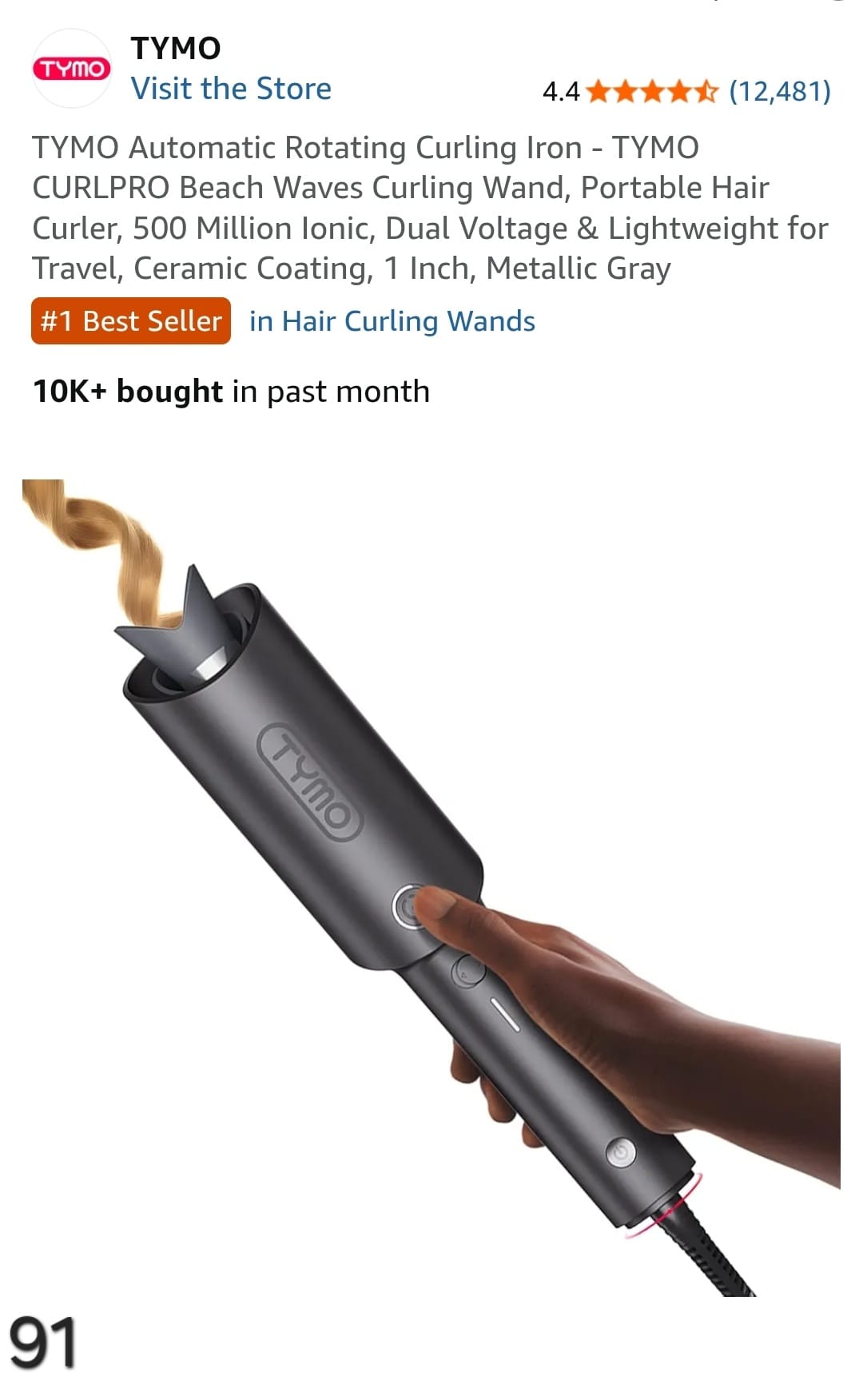 TYMO Automatic Rotating Curling Iron - ΤΥΜΟ CURLPRO Beach Waves Curling Wand, Portable Hair Curler, 500 Million lonic, Dual Voltage & Lightweight for Travel, Ceramic Coating, 1 Inch, Metallic Gray. Lv91