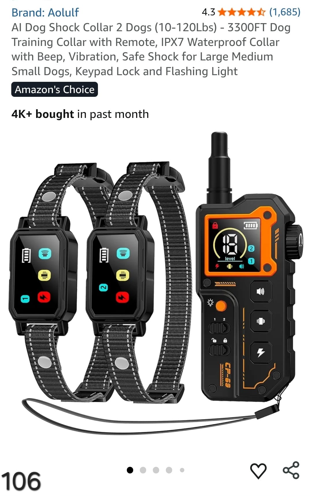 Al Dog Shock Collar 2 Dogs (10-120Lbs) - 3300FT Dog Training Collar with Remote, IPX7 Waterproof Collar with Beep, Vibration, Safe Shock for Large Medium Small Dogs, Keypad Lock and Flashing Light. Lv106