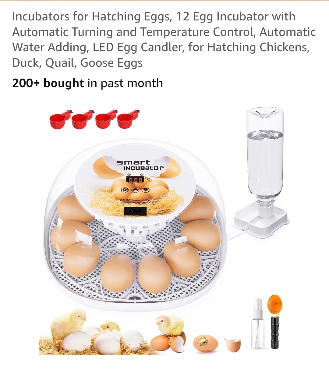Incubators for Hatching Eggs, 12 Egg Incubator with Automatic Turning and Temperature Control, Automatic Water Adding, LED Egg Candler, for Hatching Chickens, Duck, Quail, Goose Eggs. Lv127
