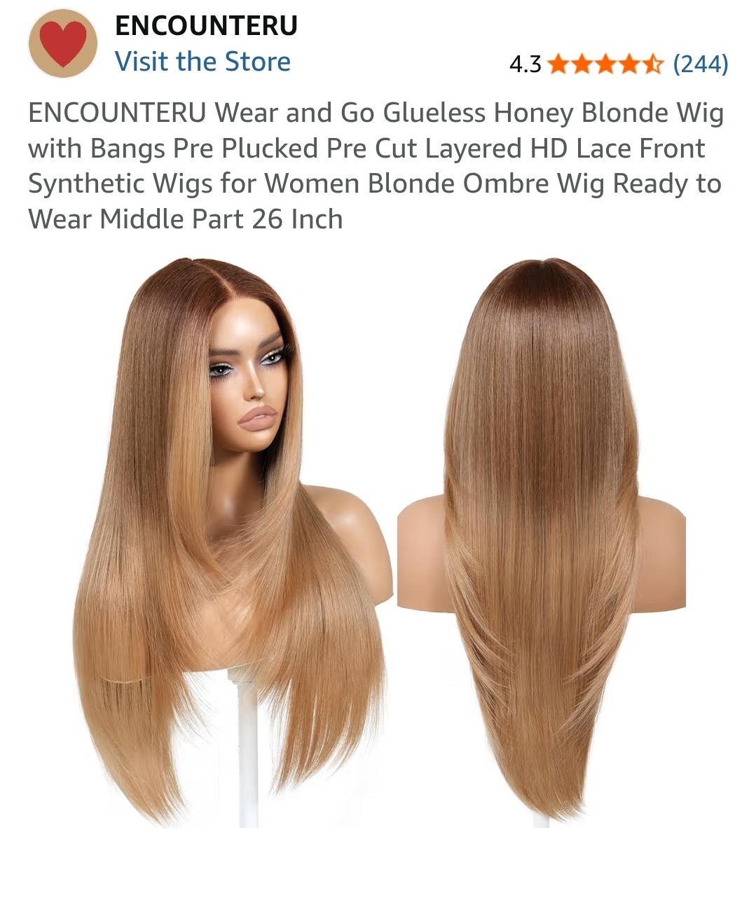 ENCOUNTERU Wear and Go Glueless Honey Blonde Wig with Bangs Pre Plucked Pre Cut Layered HD Lace Front Synthetic Wigs for Women Blonde Ombre Wig Ready to Wear Middle Part 26 Inch. Lv129
