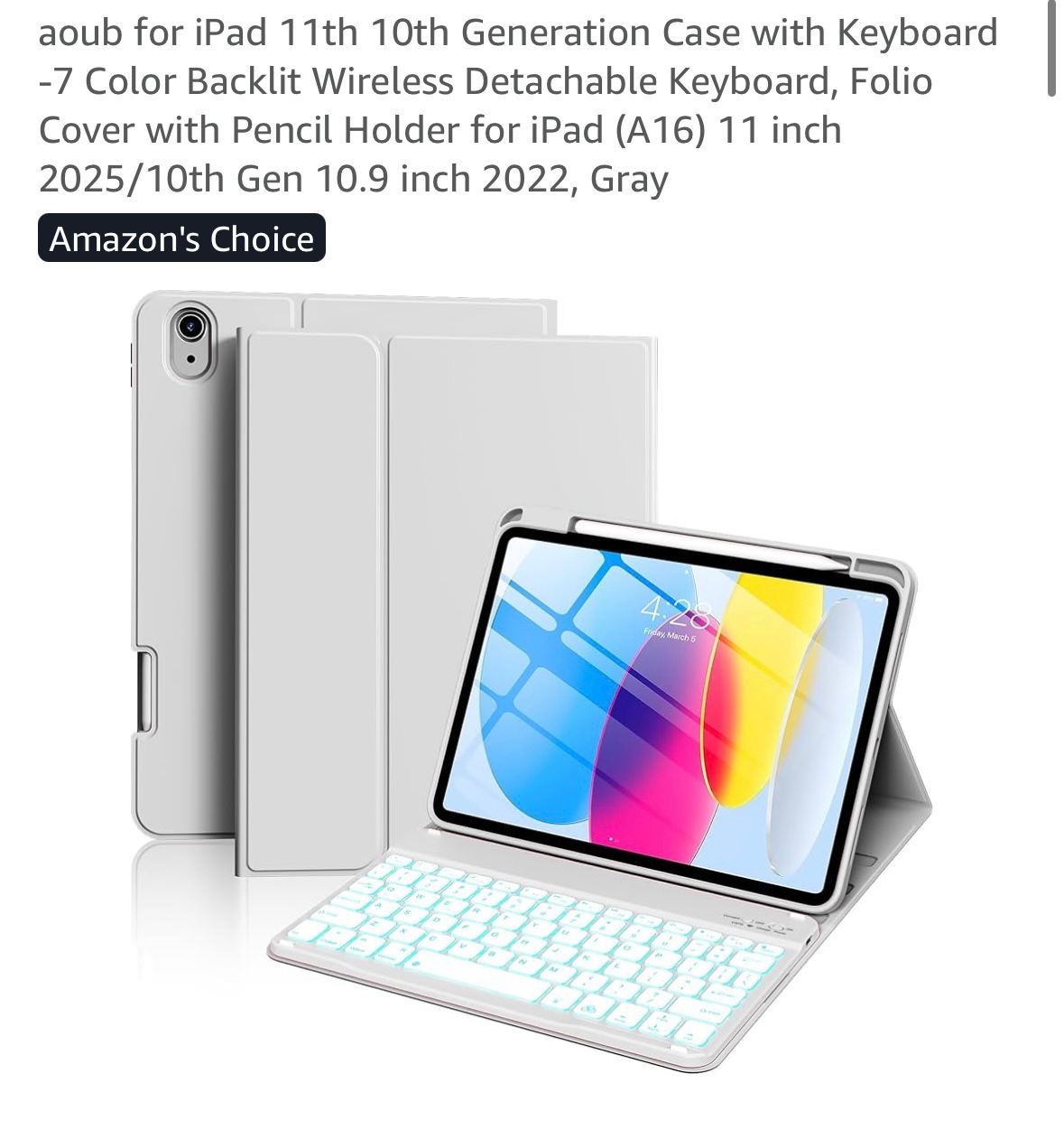 aoub for iPad 11th 10th Generation Case with Keyboard -7 Color Backlit Wireless Detachable Keyboard #F72