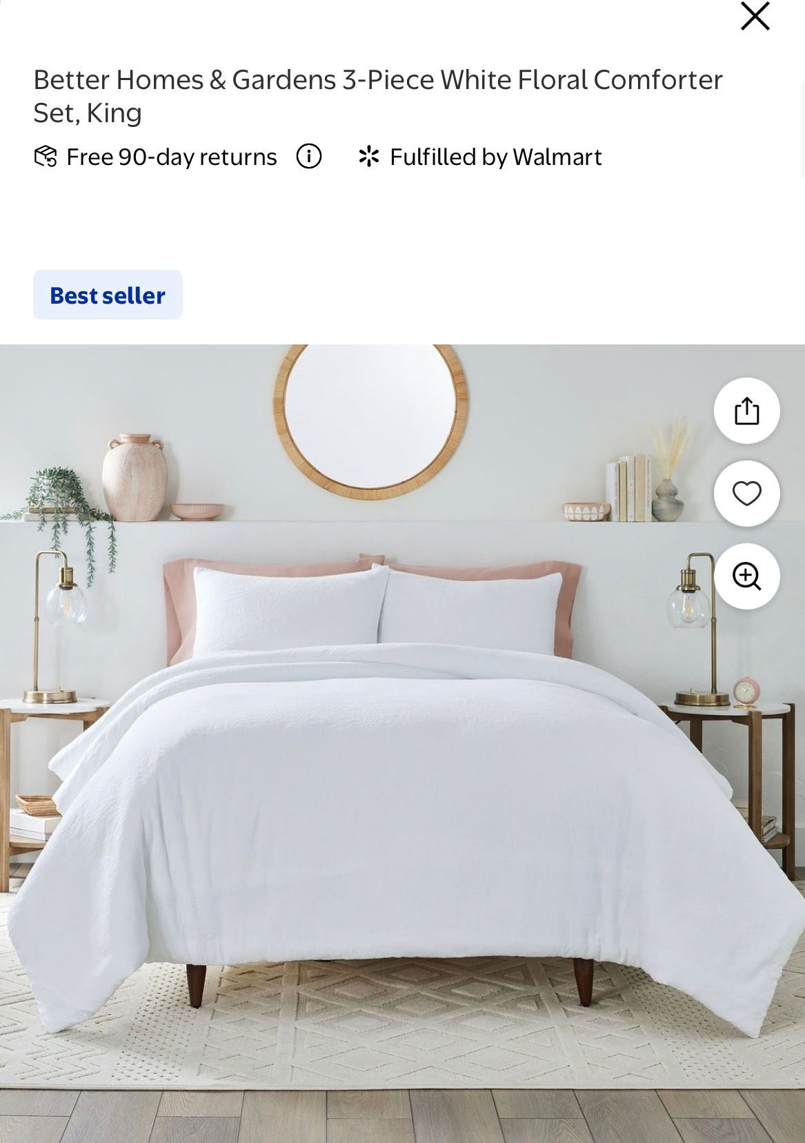 Better Homes & Gardens 3-Piece White Floral Comforter Set, King #G1