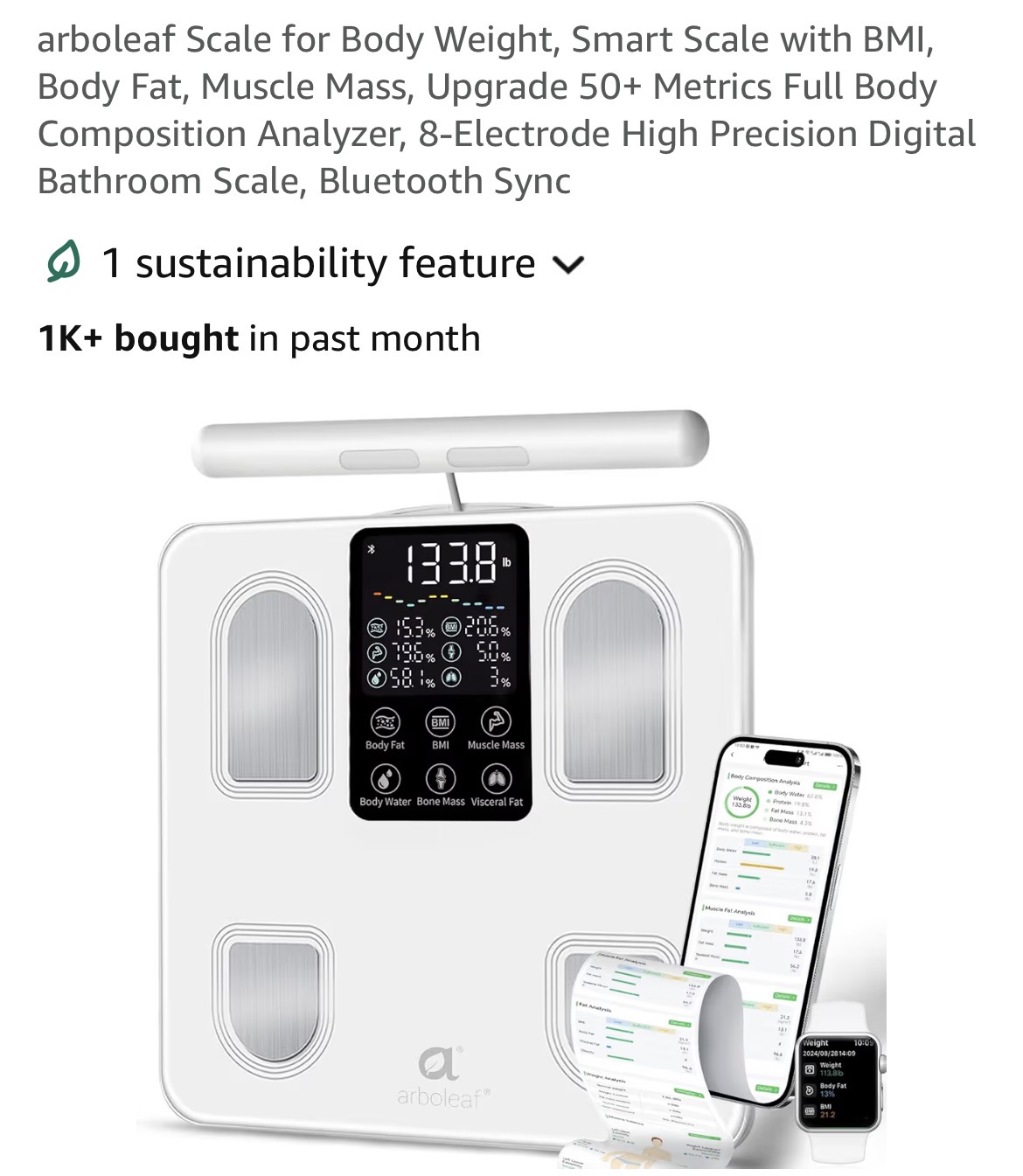 arboleaf Scale for Body Weight, Smart Scale with BMI, Body Fat, Muscle Mass #G45