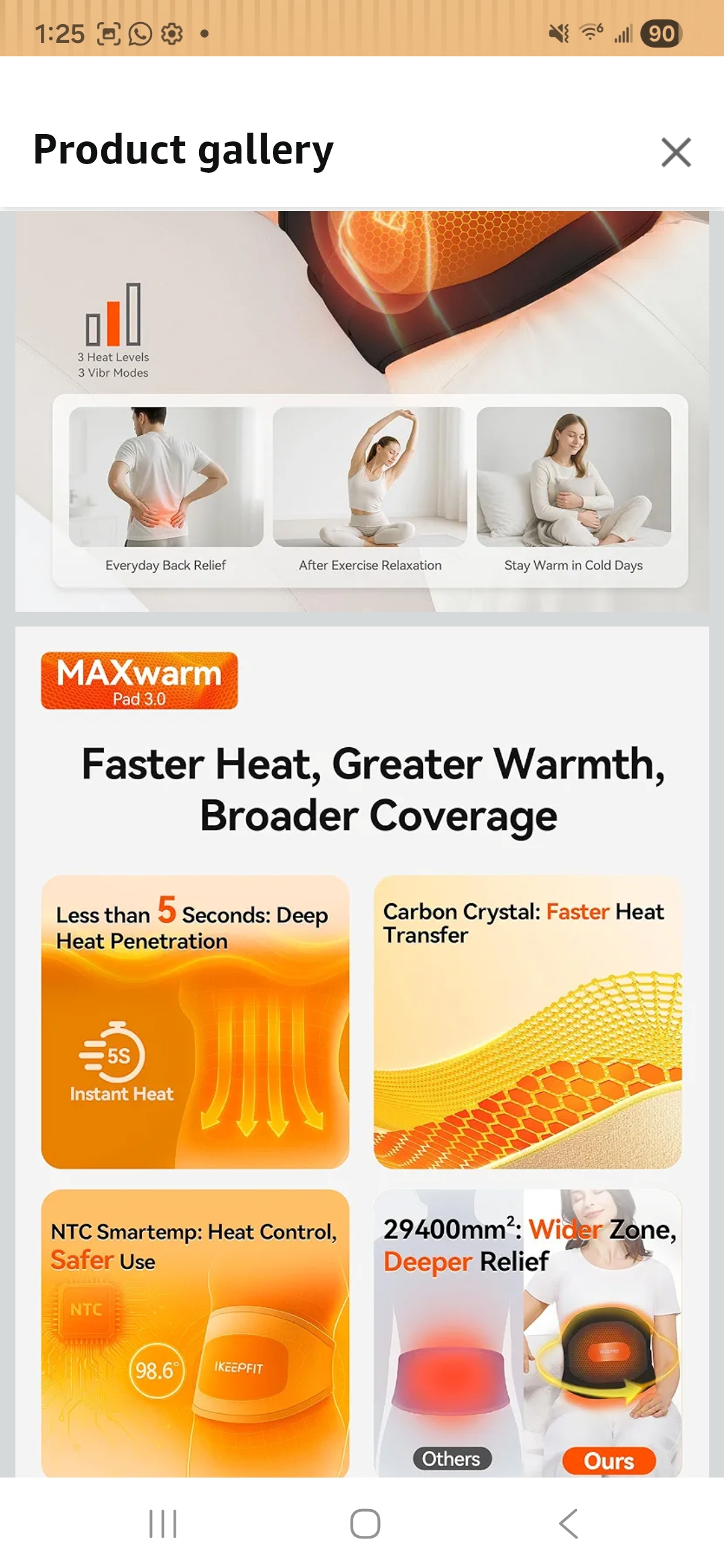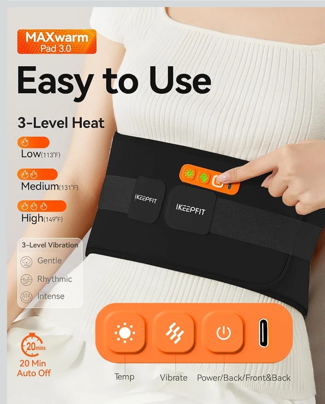 Ending On: 25/01/2026 07:02 Preview Time: 01:27 PMIKEEPFIT Portable Heating Pad for Back, Cordless Wearable Heat Belt with Massager for Lower Back Pain Relief, Battery Powered 8000 mAh Rechargeable, MAXwarm® 3.0