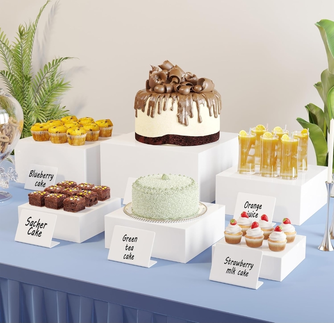 Ending On: 25/01/2026 07:03 Preview Time: 09:28 PMBuffet Risers with Mini Signs, Food Risers for Buffet Table, Display Stand for Catering Dessert, White Acrylic Cube Boxes Nesting Risers with Hollow Bottoms (White, 1 Set (6", 7", 8", 9", 10", 12"))